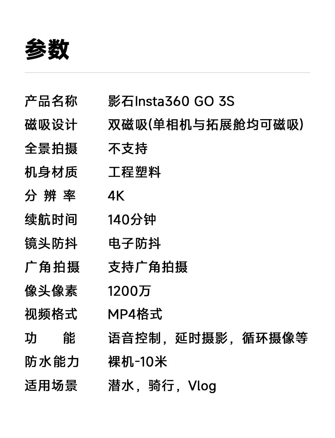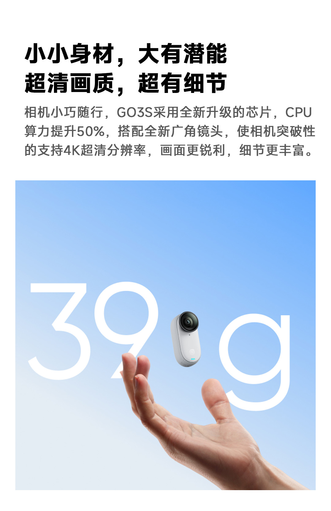 影石GO3S拇指相机4KVlog骑行亲子宠物口袋运动相机 标配 灵动白64GB