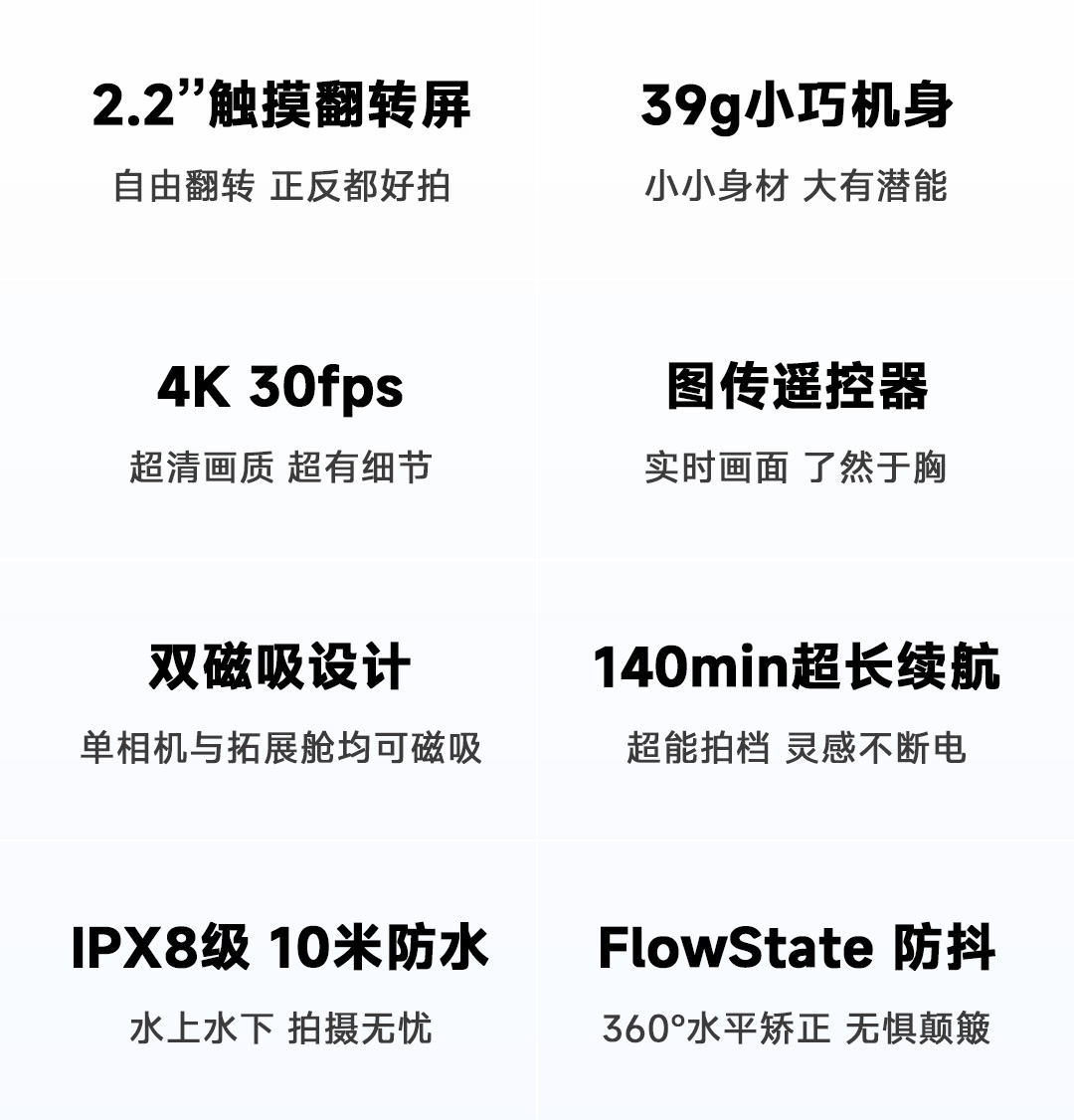 影石 GO Ultra旗舰影像口袋相机4K骑行跑步运动相机 标配 灵动白(无卡)