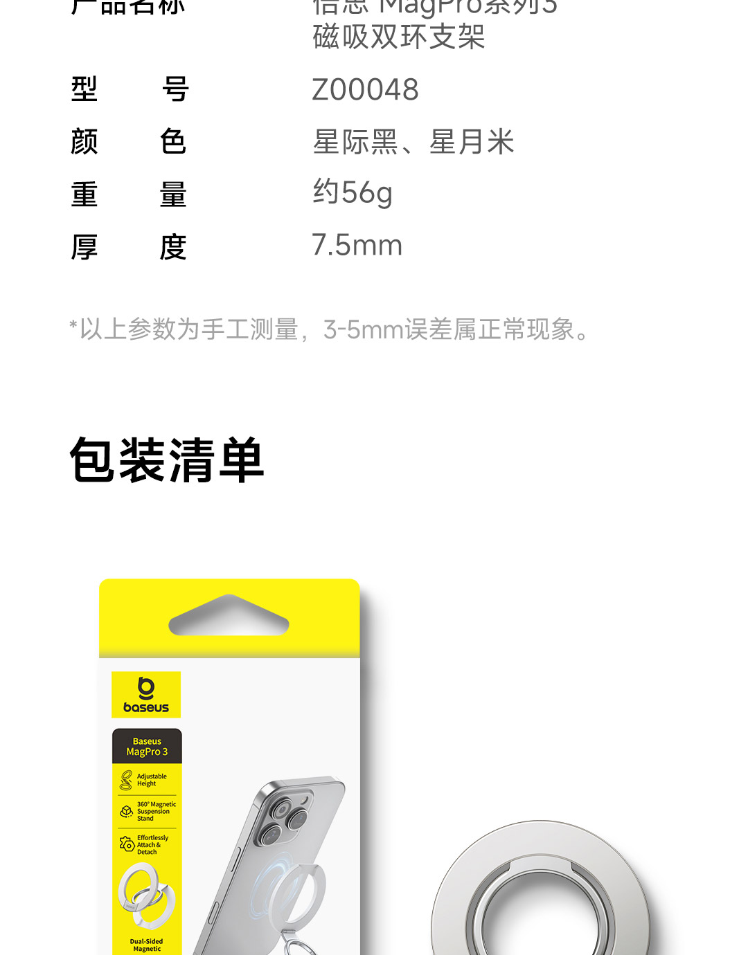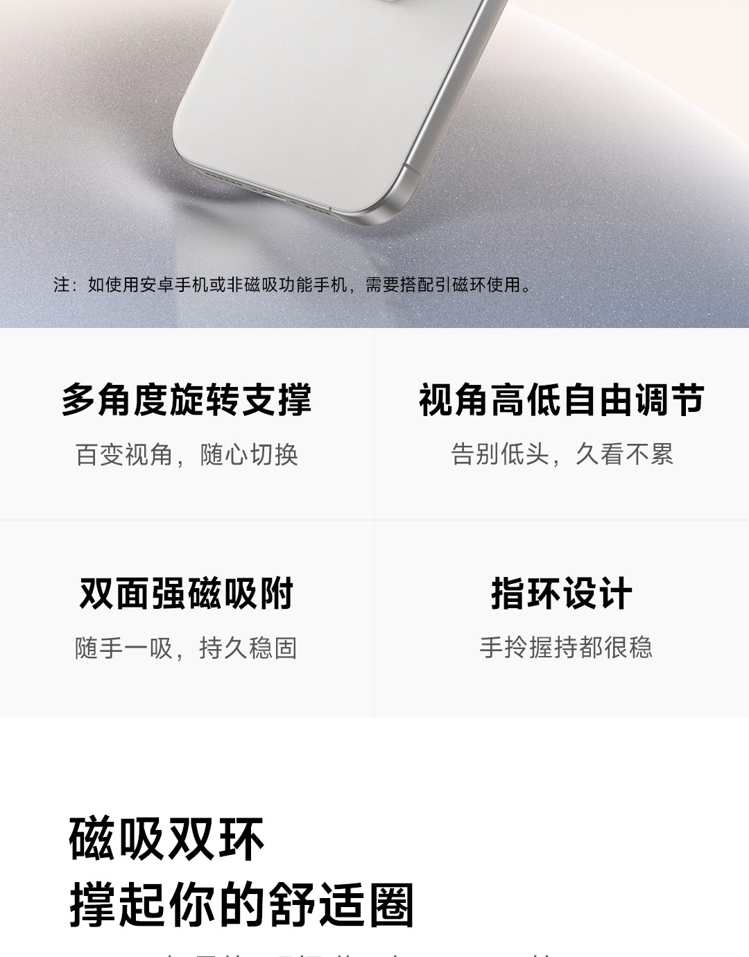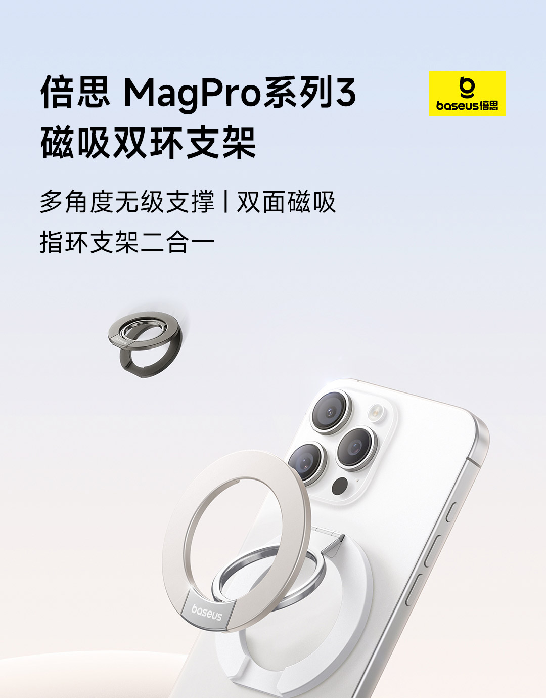 倍思 双环磁吸手机支架MagSafe 【星月米】360°无极旋转丨强磁吸附丨双环稳固支撑
