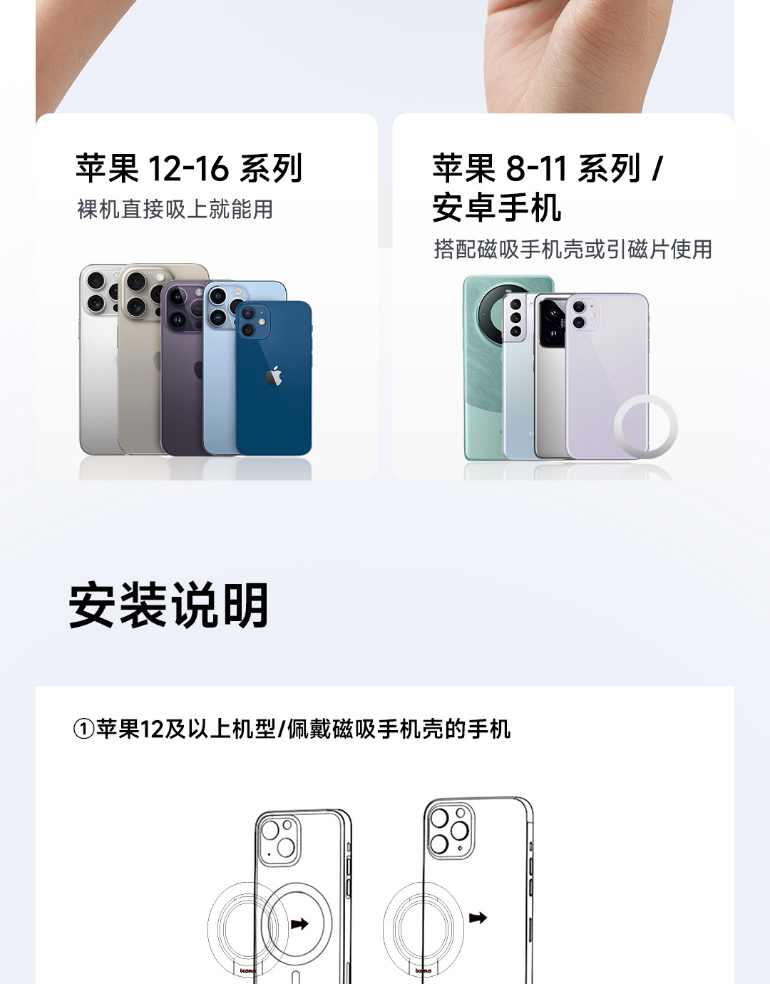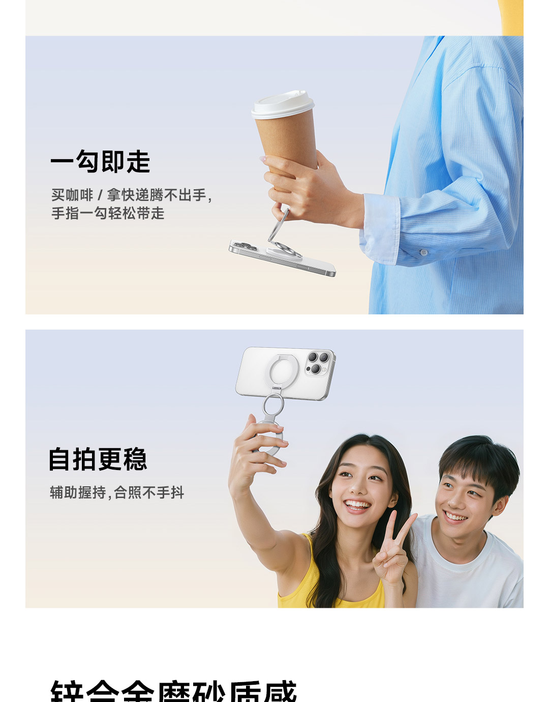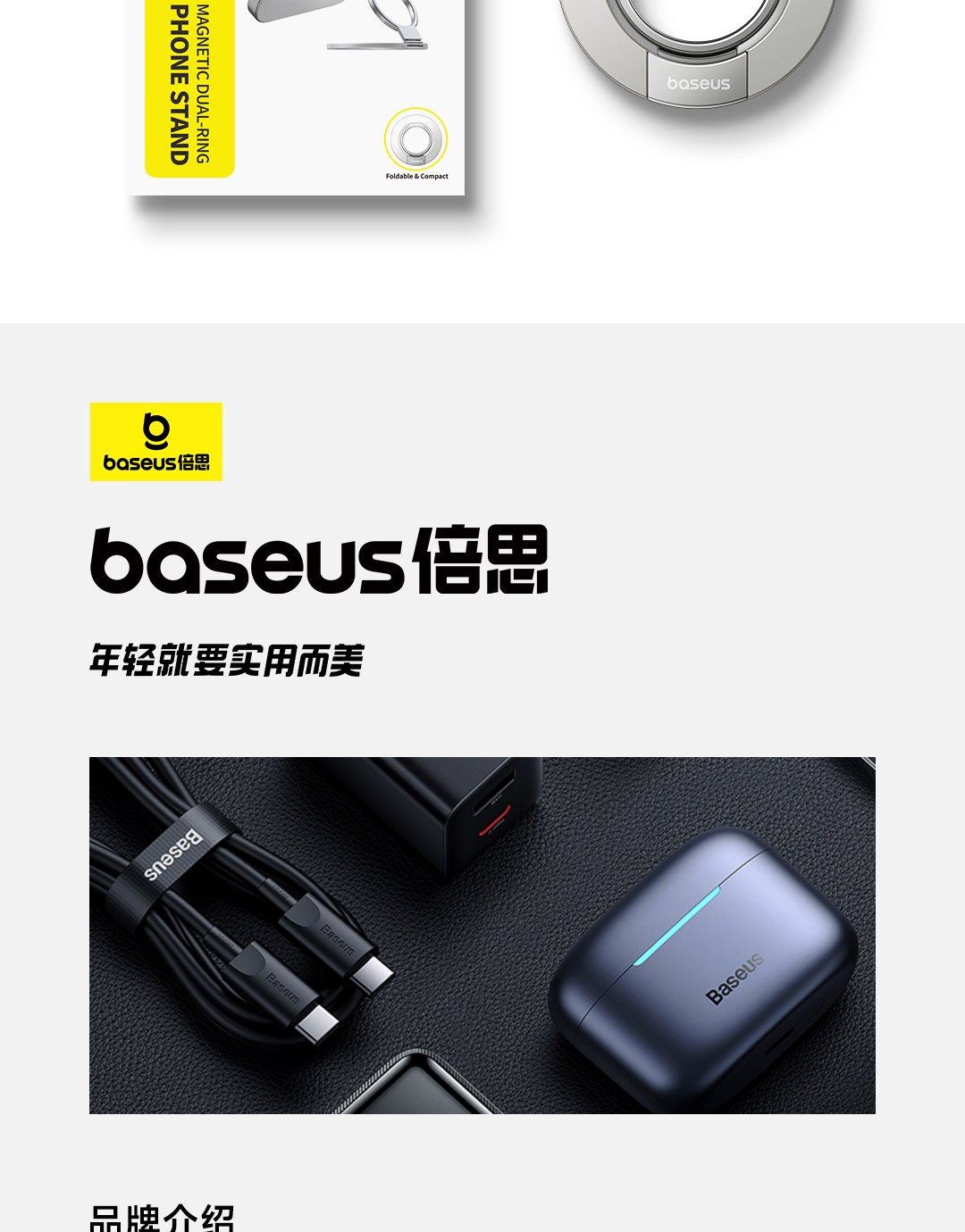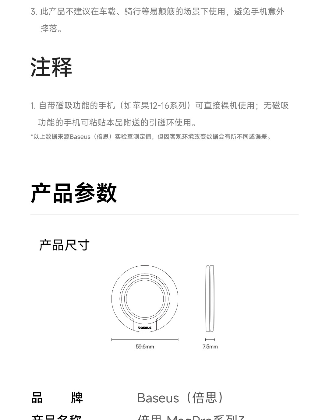倍思 双环磁吸手机支架MagSafe 【星月米】360°无极旋转丨强磁吸附丨双环稳固支撑