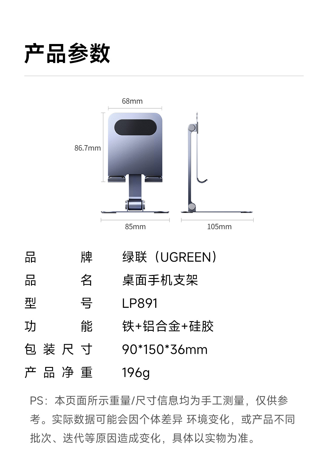 绿联车载手机支架 汽车圆形出风口手机架车用导航适用奔驰宝马 出风口用 银灰色