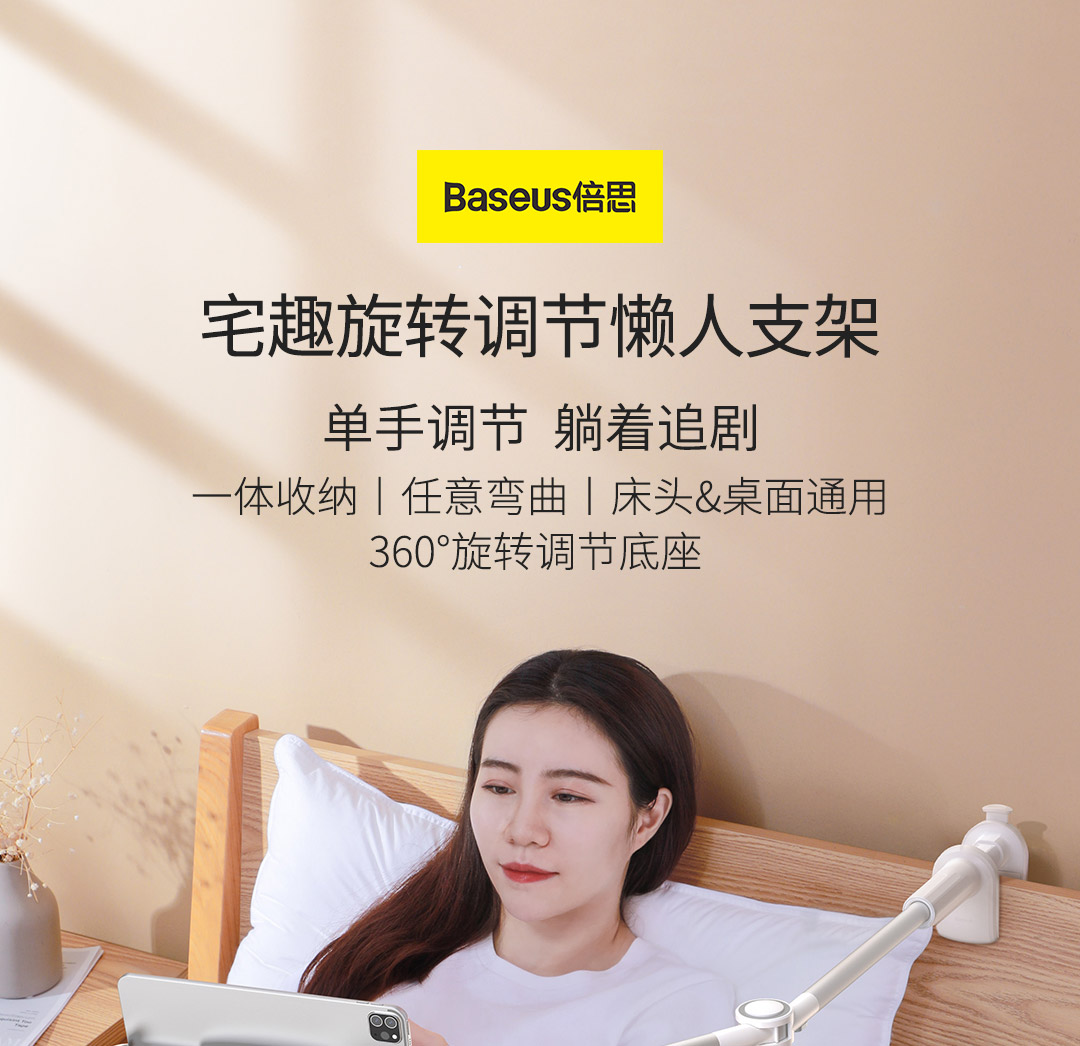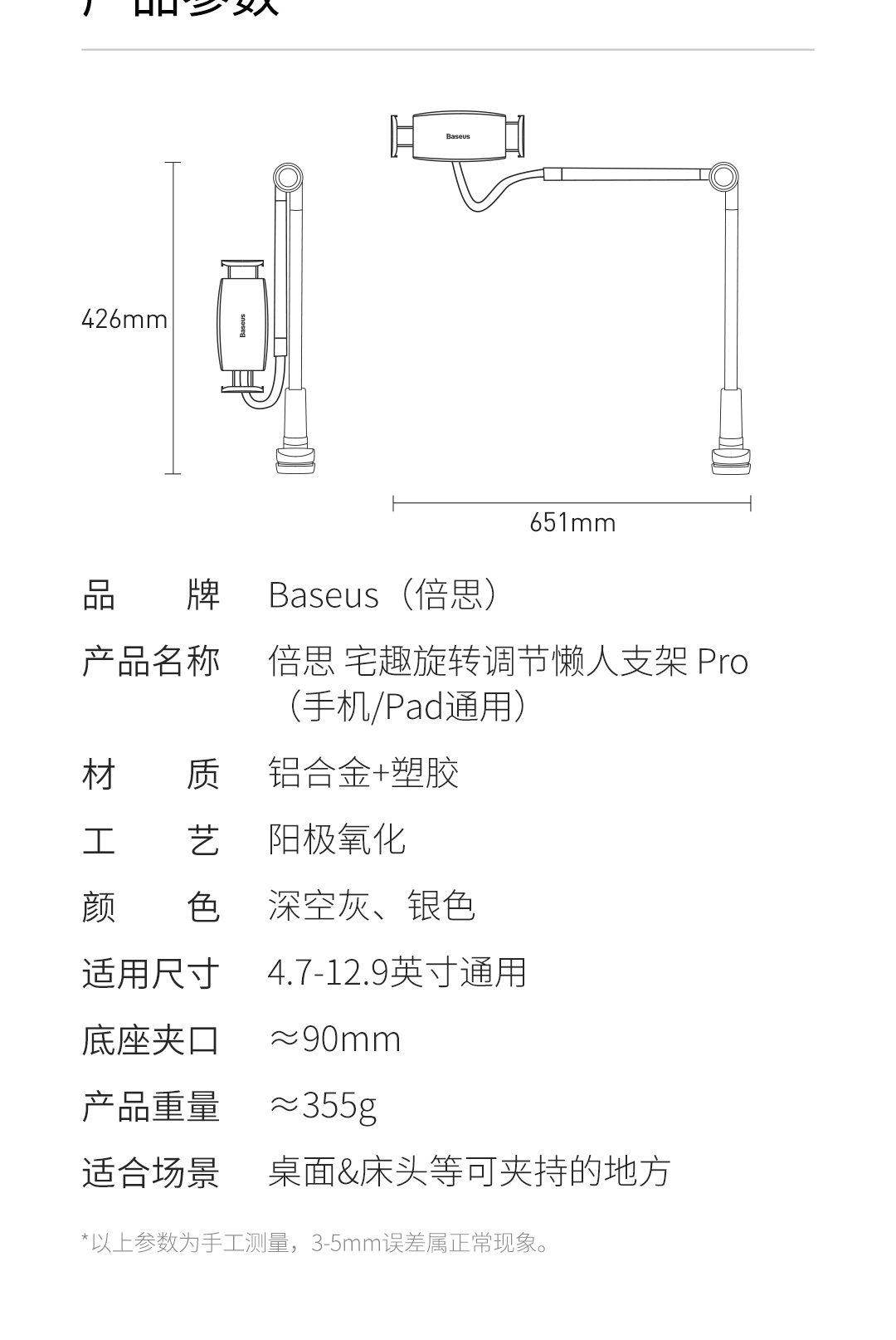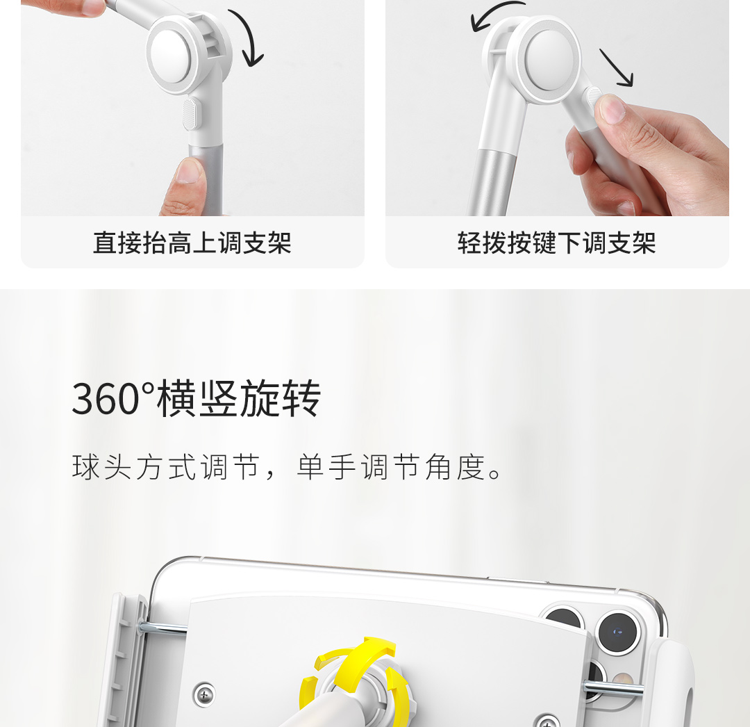 【包邮】倍思无级调节懒人支架/手机支架 升级款(180°上下调节,360°横竖调节,360°底座旋转调节) 深空灰