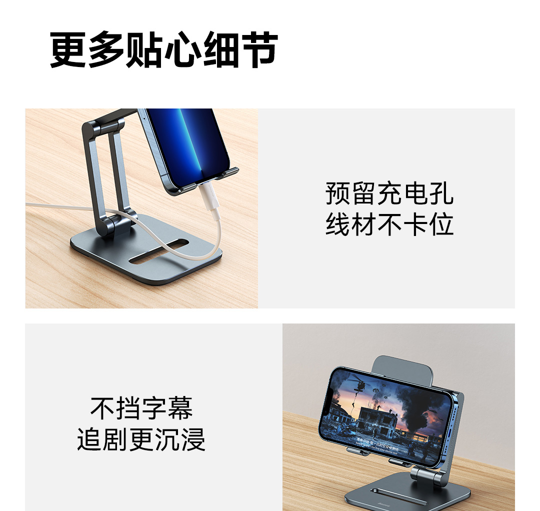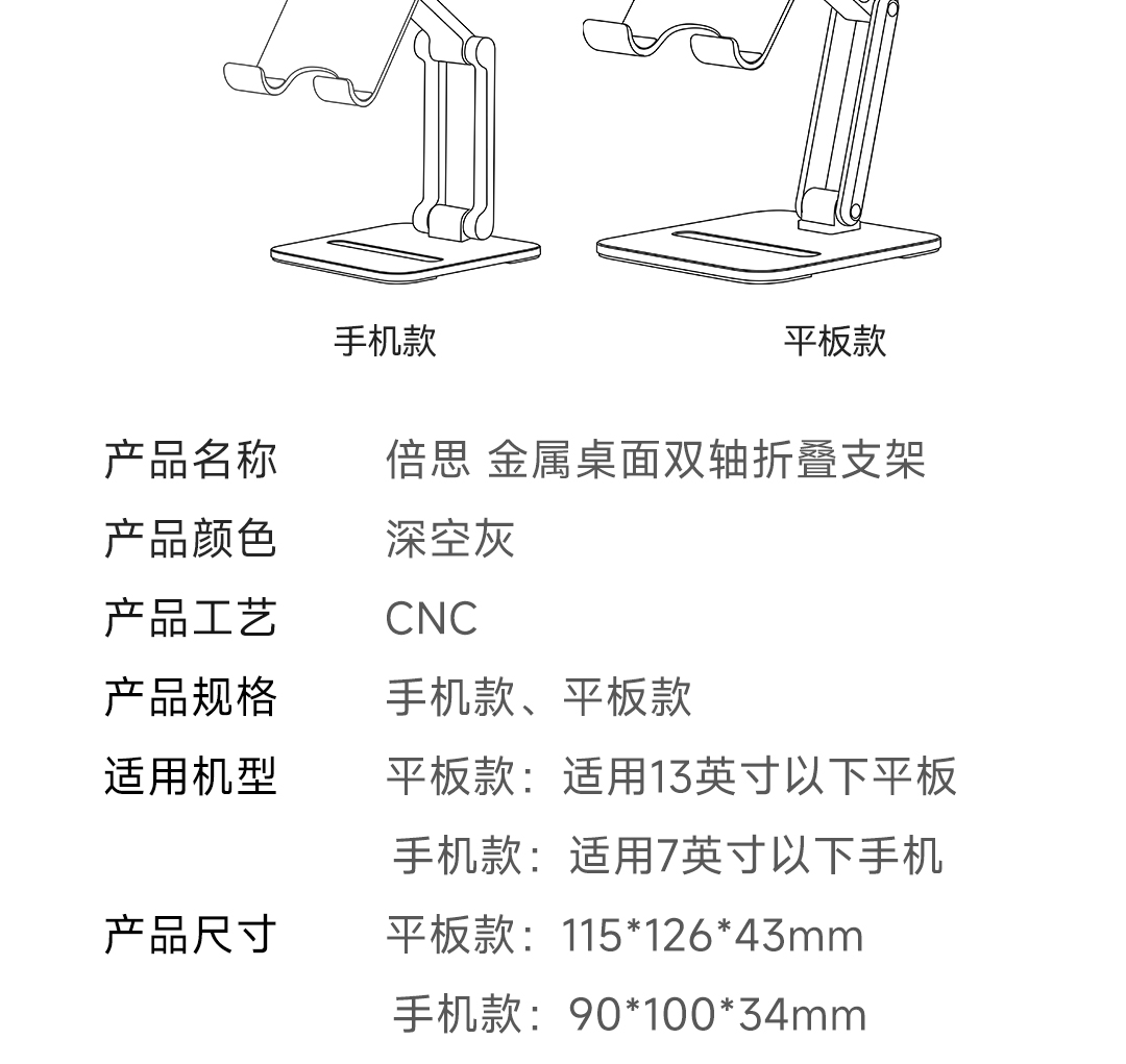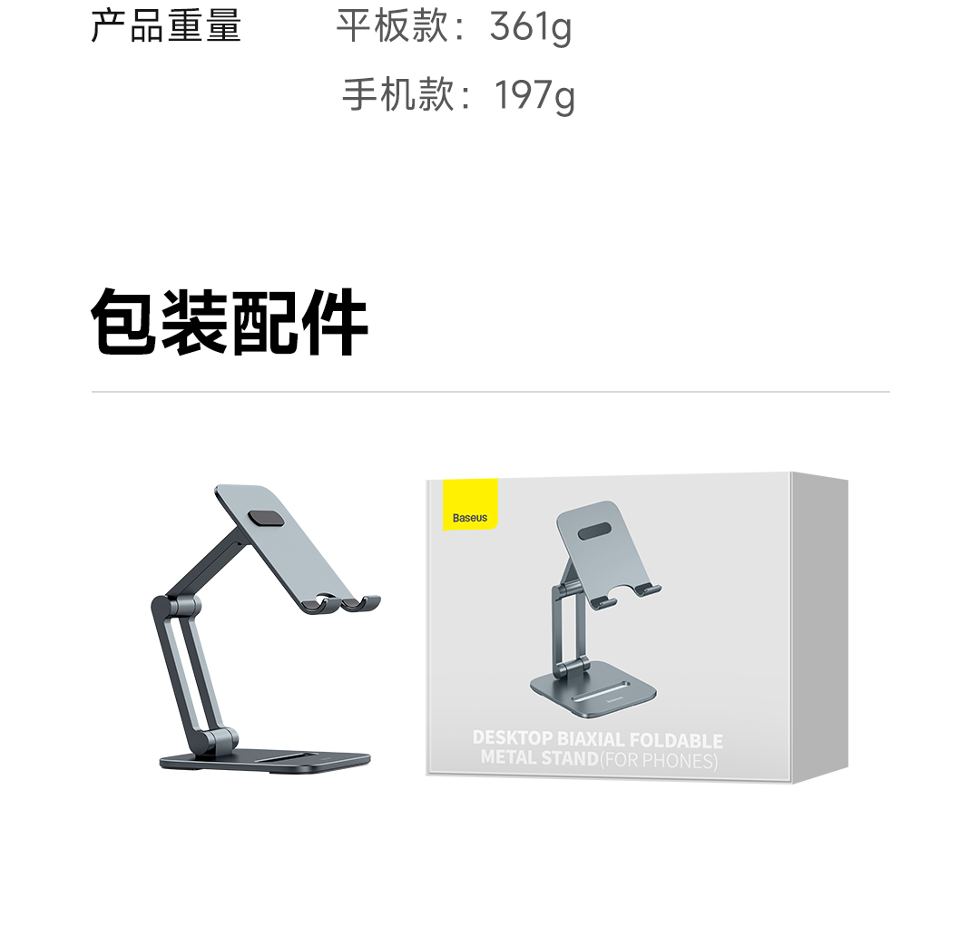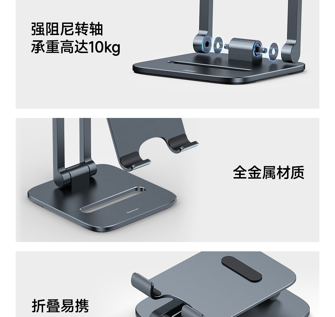 倍思 手机支架桌面平板支撑架铝合金折叠360度可旋转升降调节【全铝合金★深空灰】4-9.7英寸★手机专用