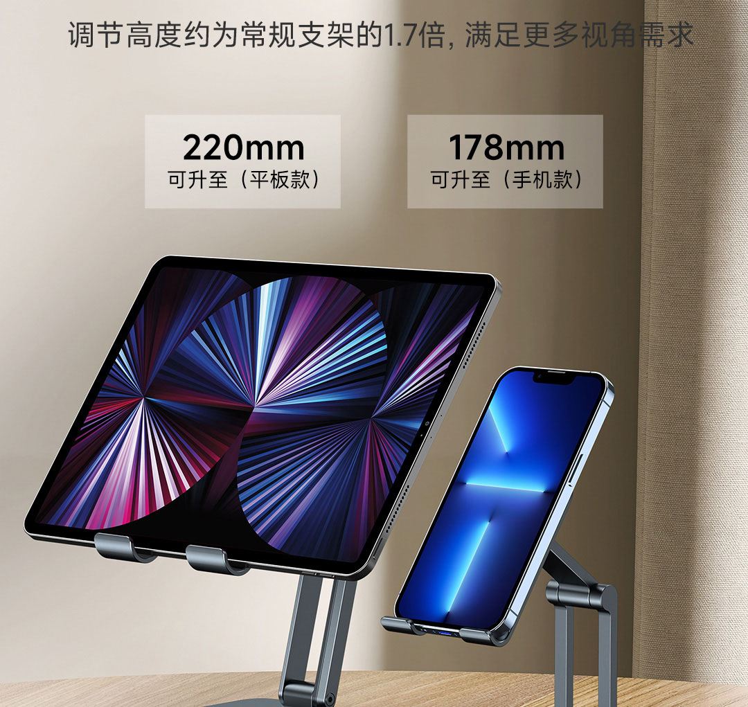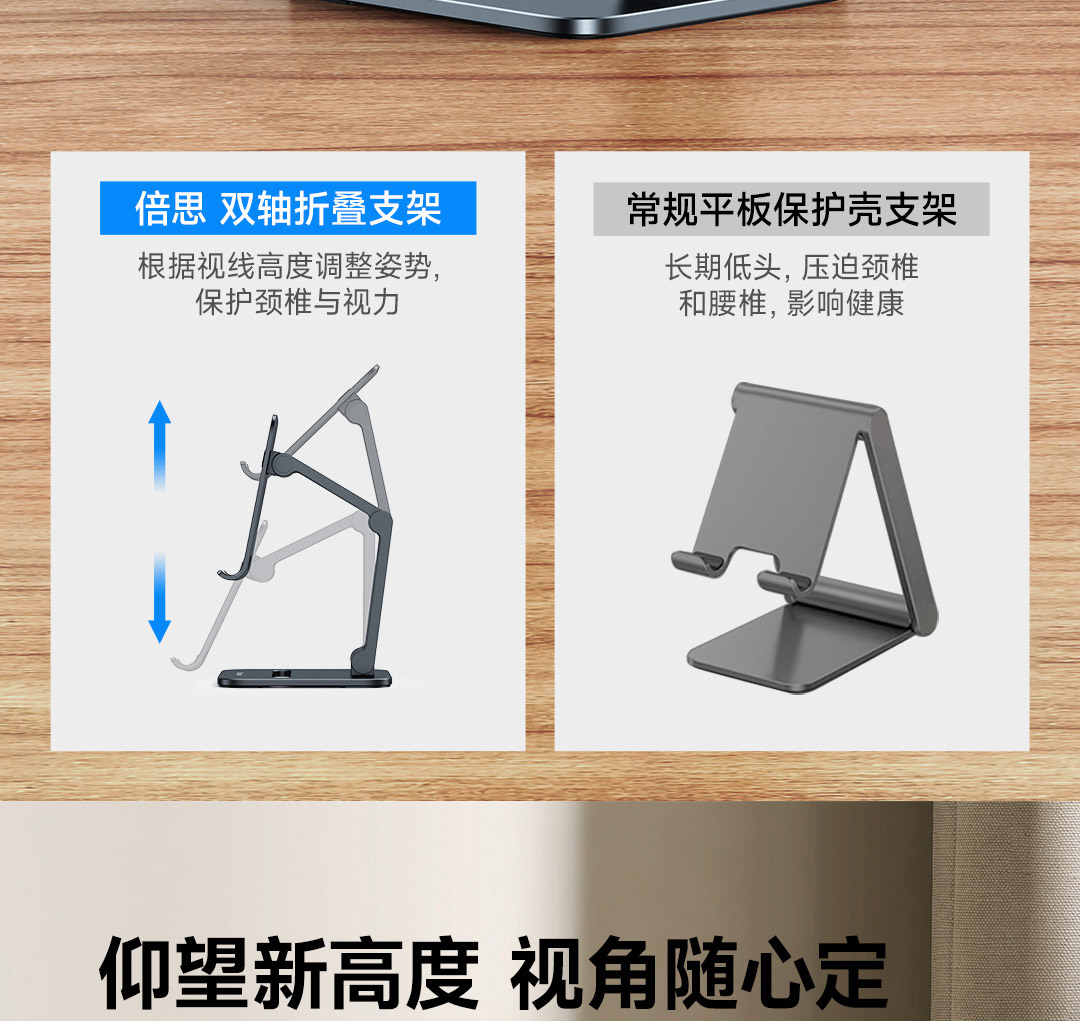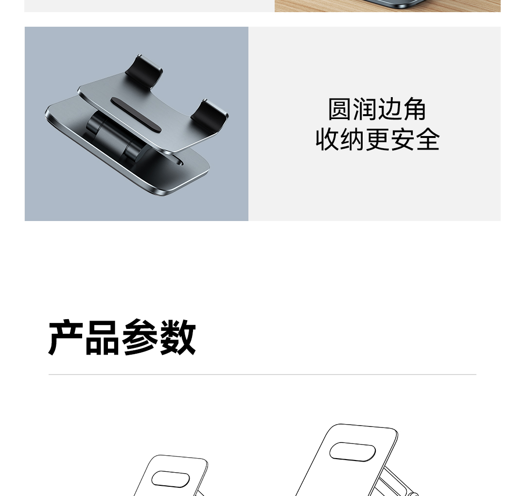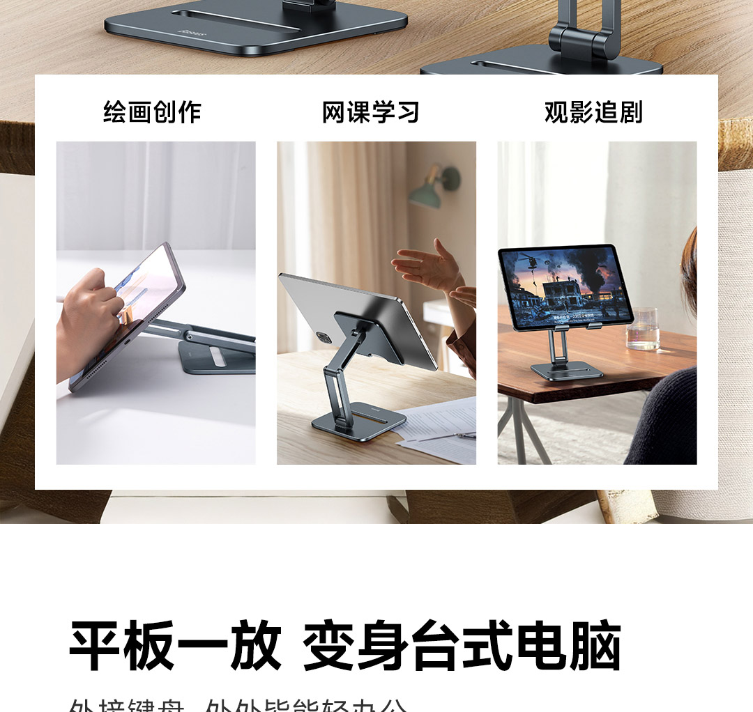 倍思 手机支架桌面平板支撑架铝合金折叠360度可旋转升降调节【全铝合金★深空灰】4-9.7英寸★手机专用