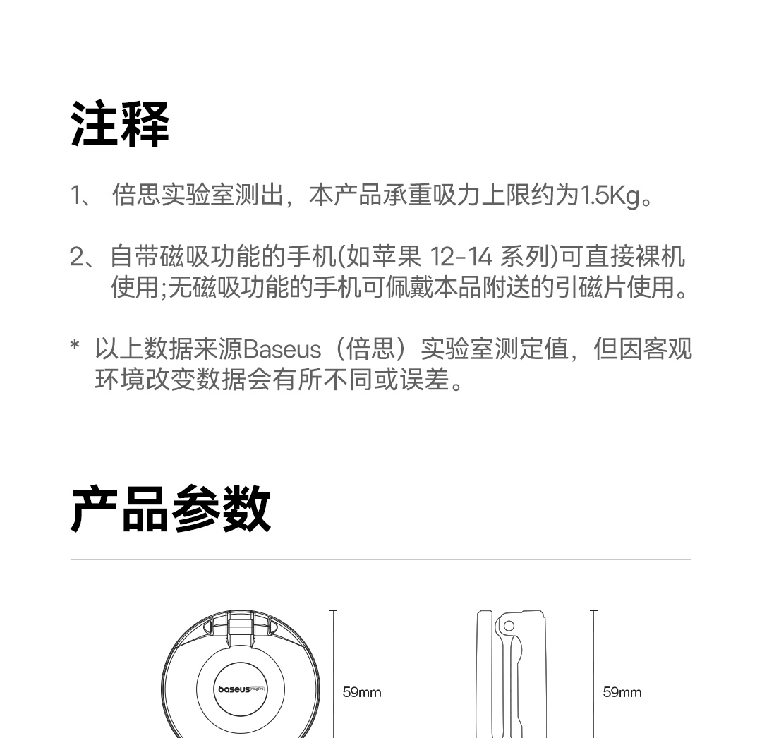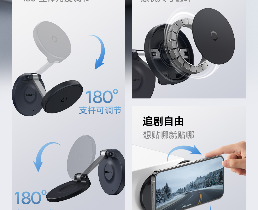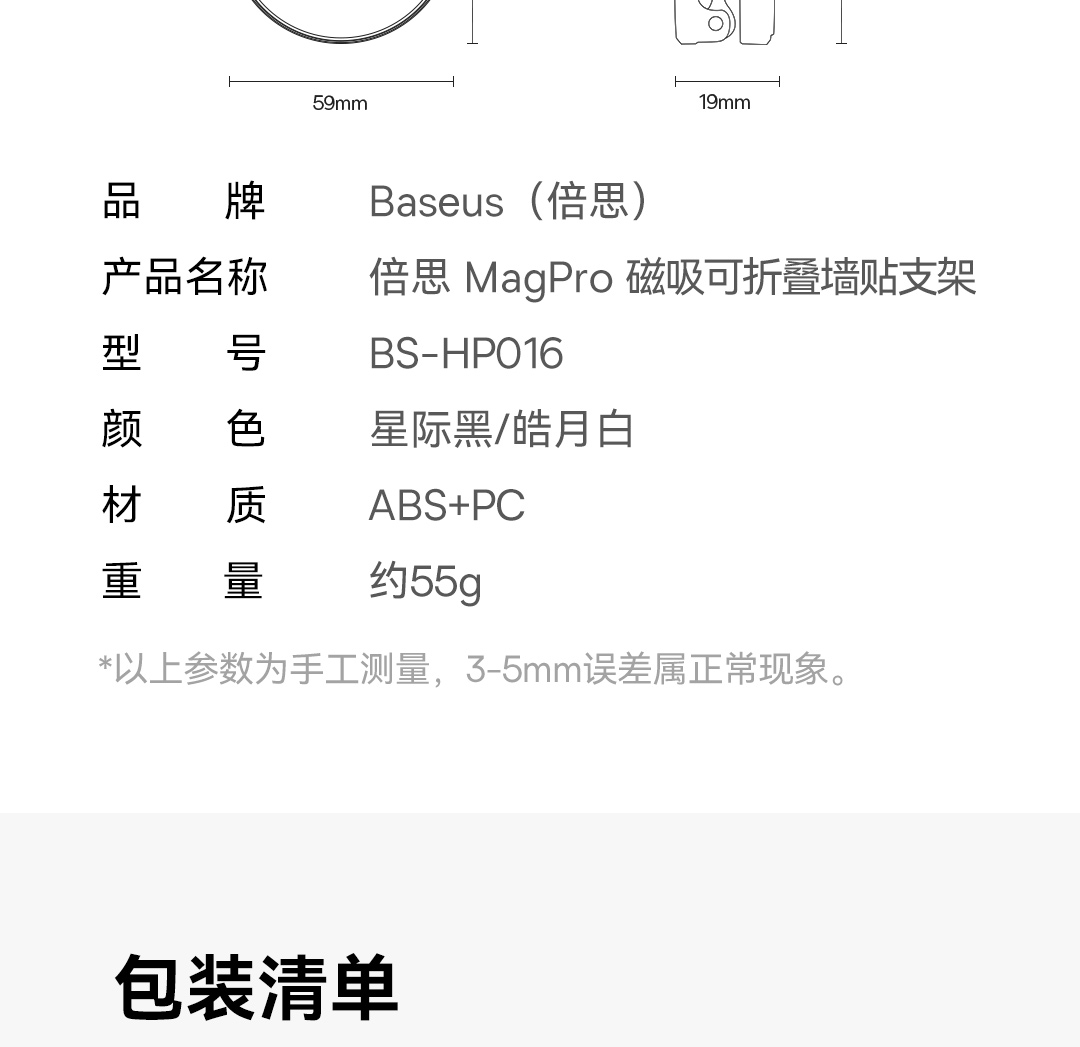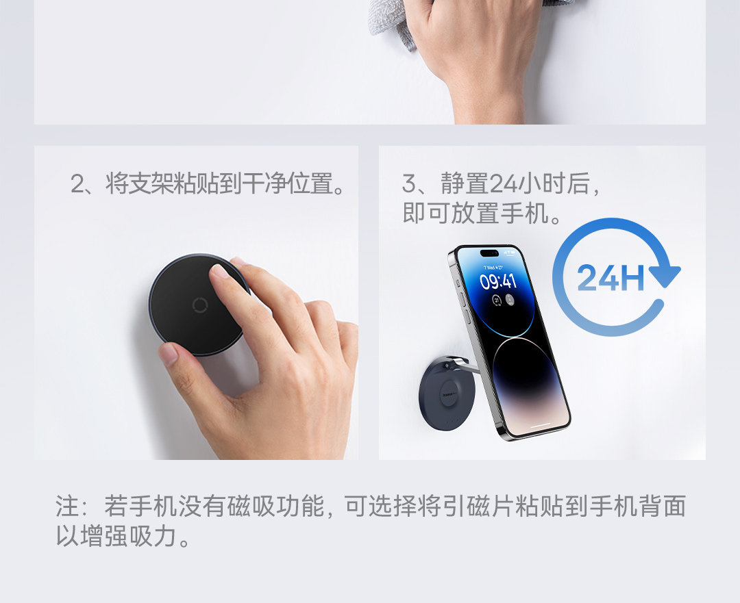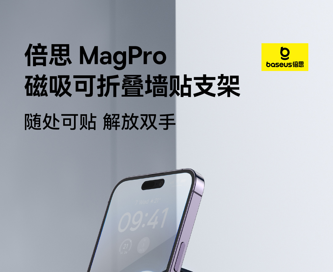 倍思 MagPro 磁吸桌面手机支架/墙贴支架 可折叠墙贴支架(附带引磁片) 黑色
