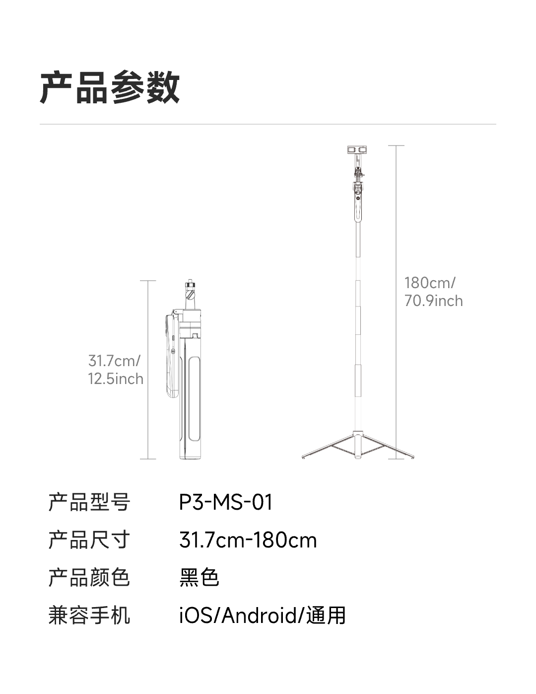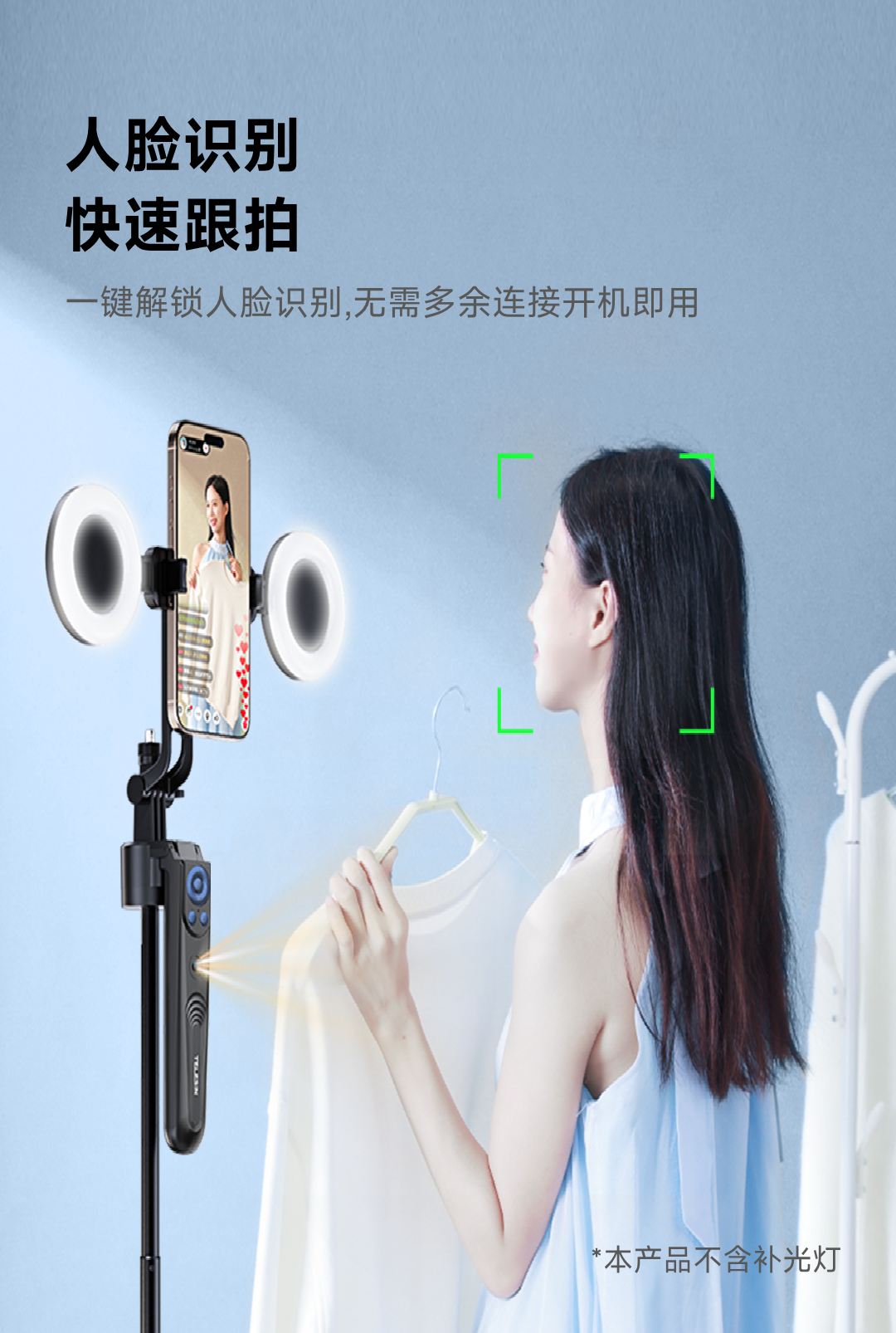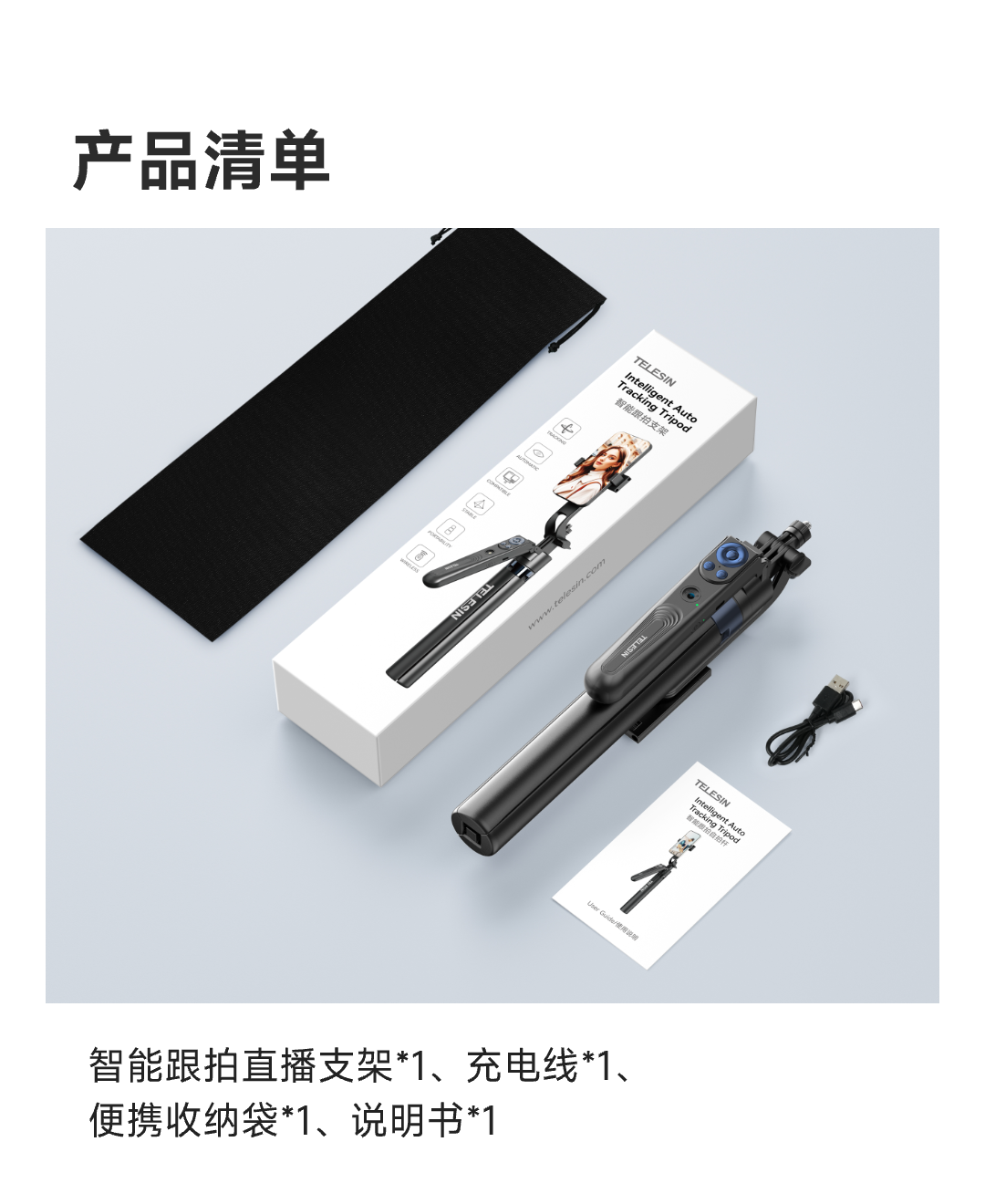 泰迅AI智能跟拍支架直播旅行VIOG便携式蓝牙遥控落地自拍杆 31-180cm伸缩 黑色