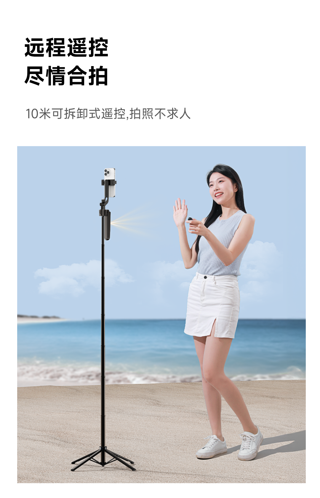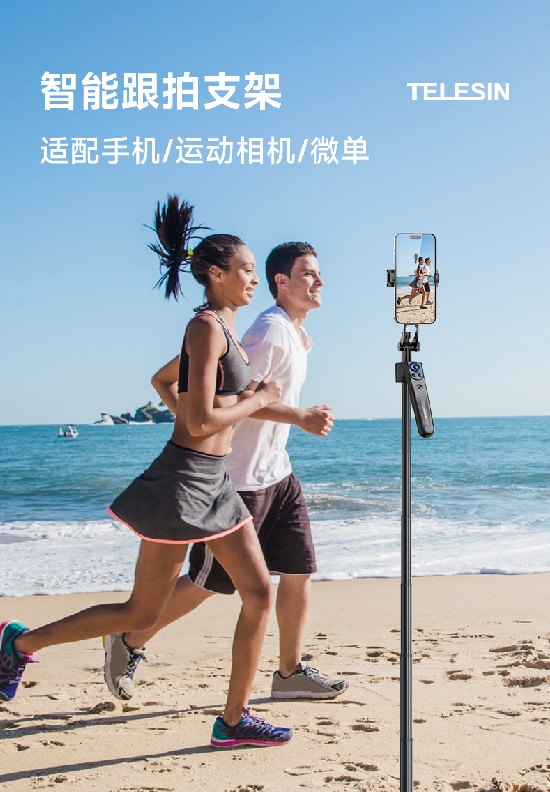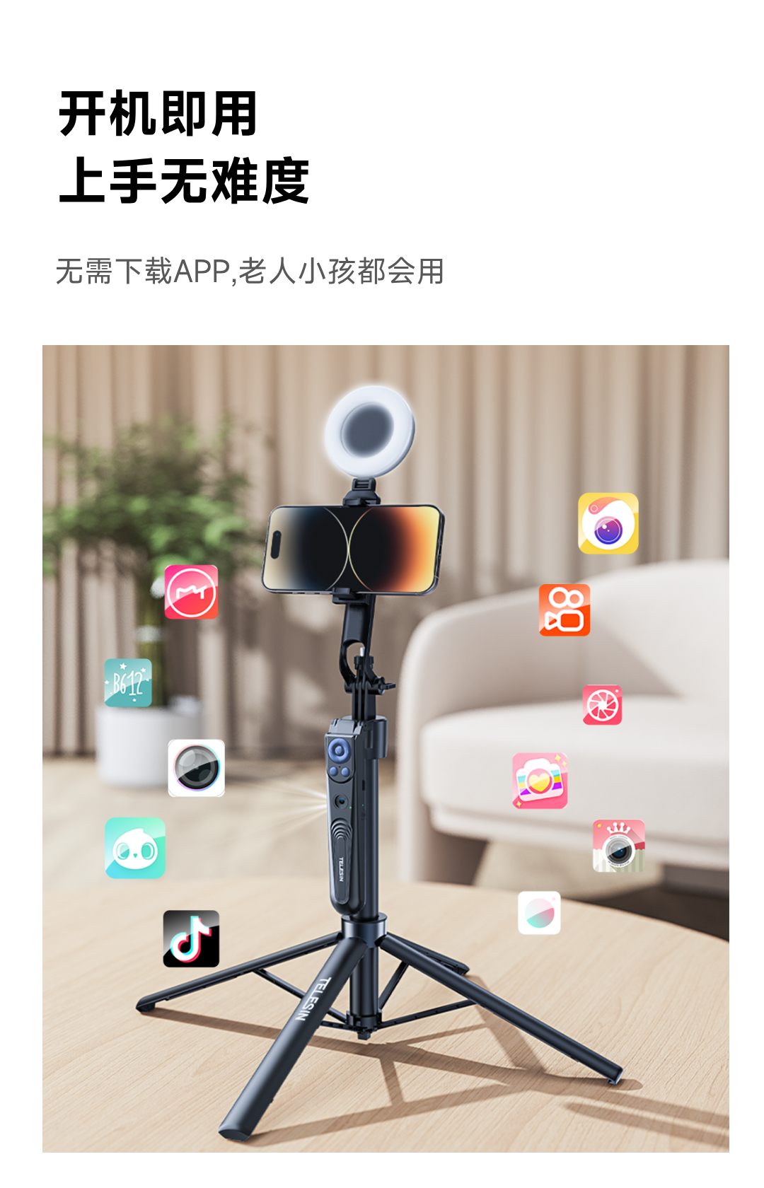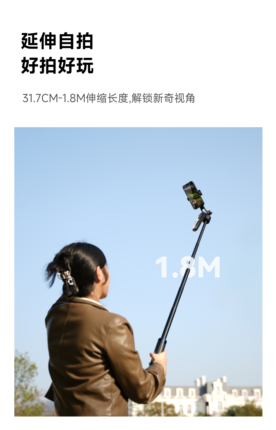 泰迅AI智能跟拍支架直播旅行VIOG便携式蓝牙遥控落地自拍杆 31-180cm伸缩 黑色