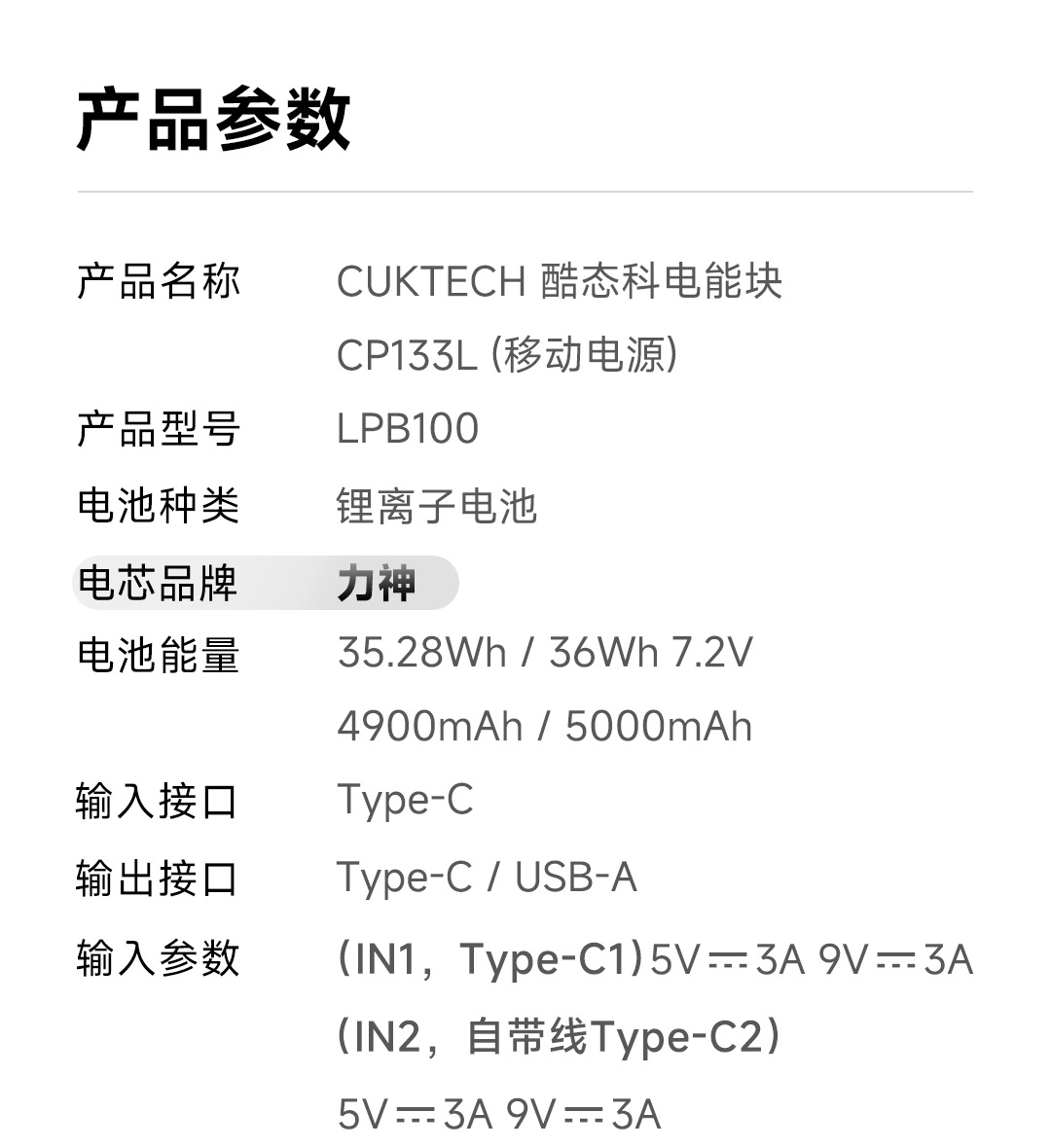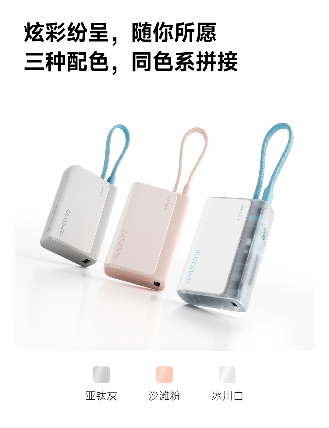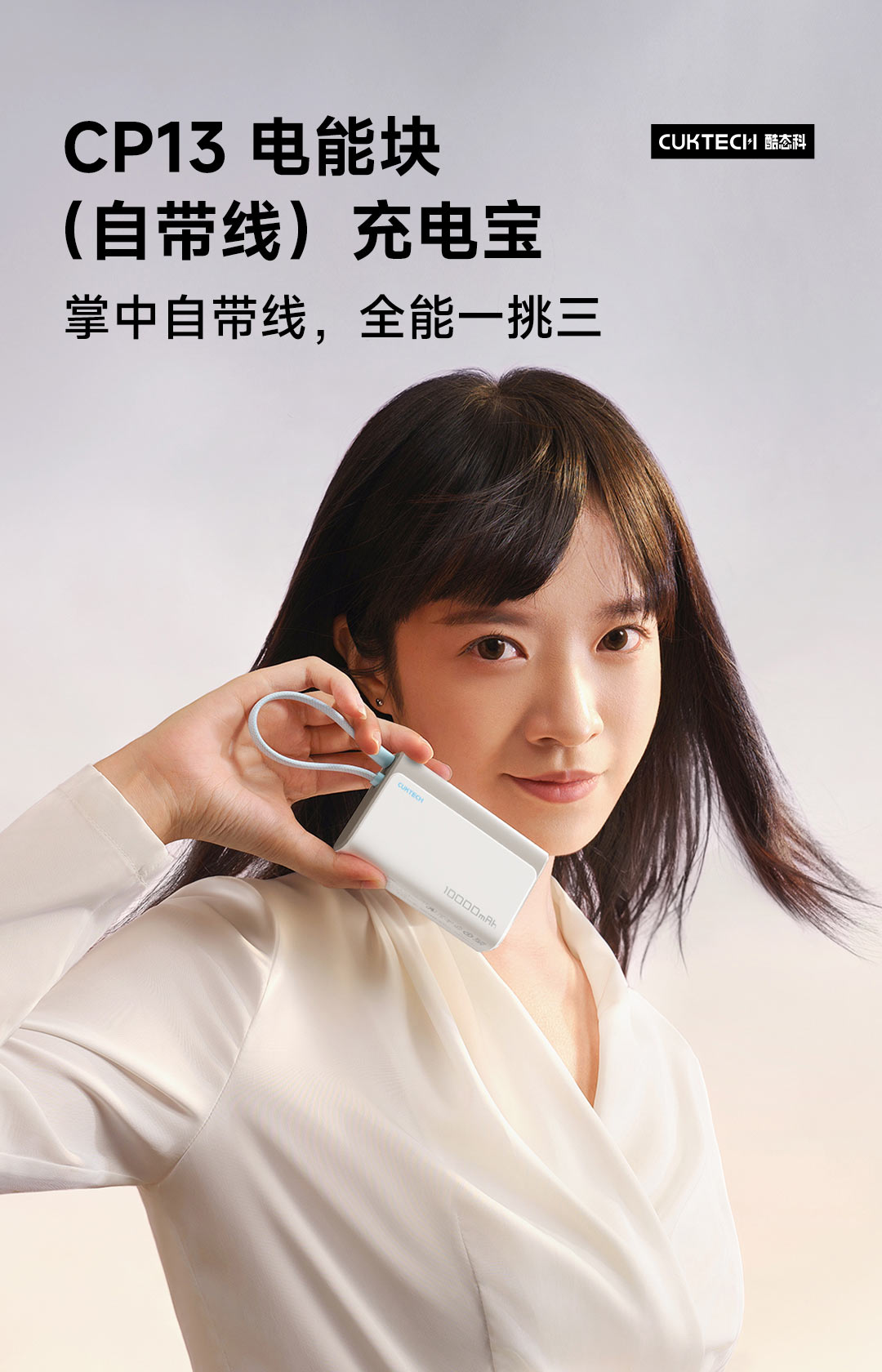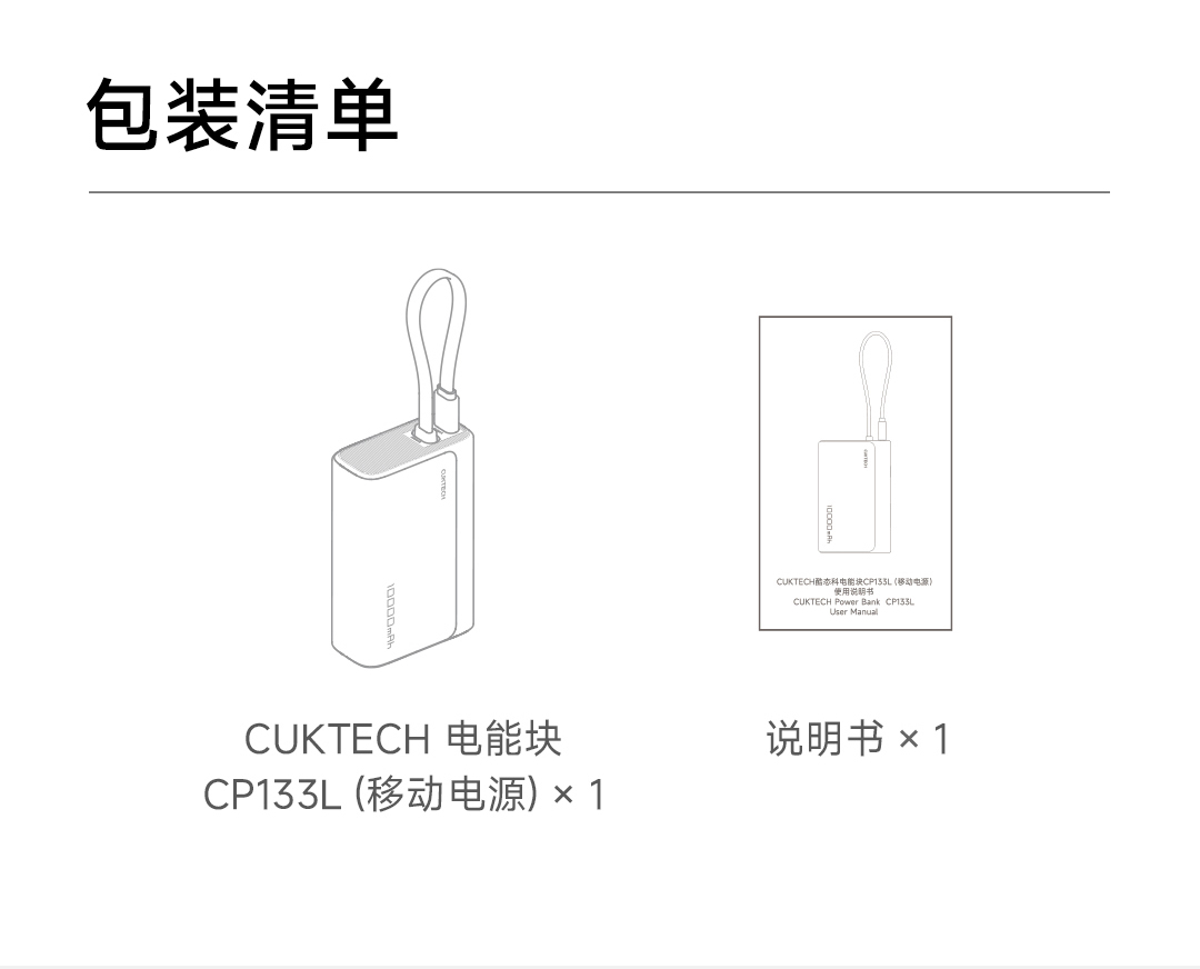 CUKTECH酷态科自带线电能块 LPB100 亚钛灰