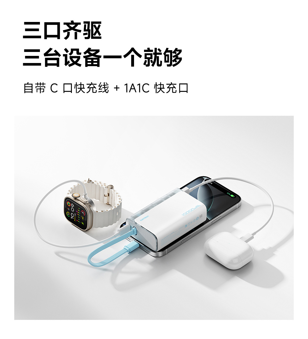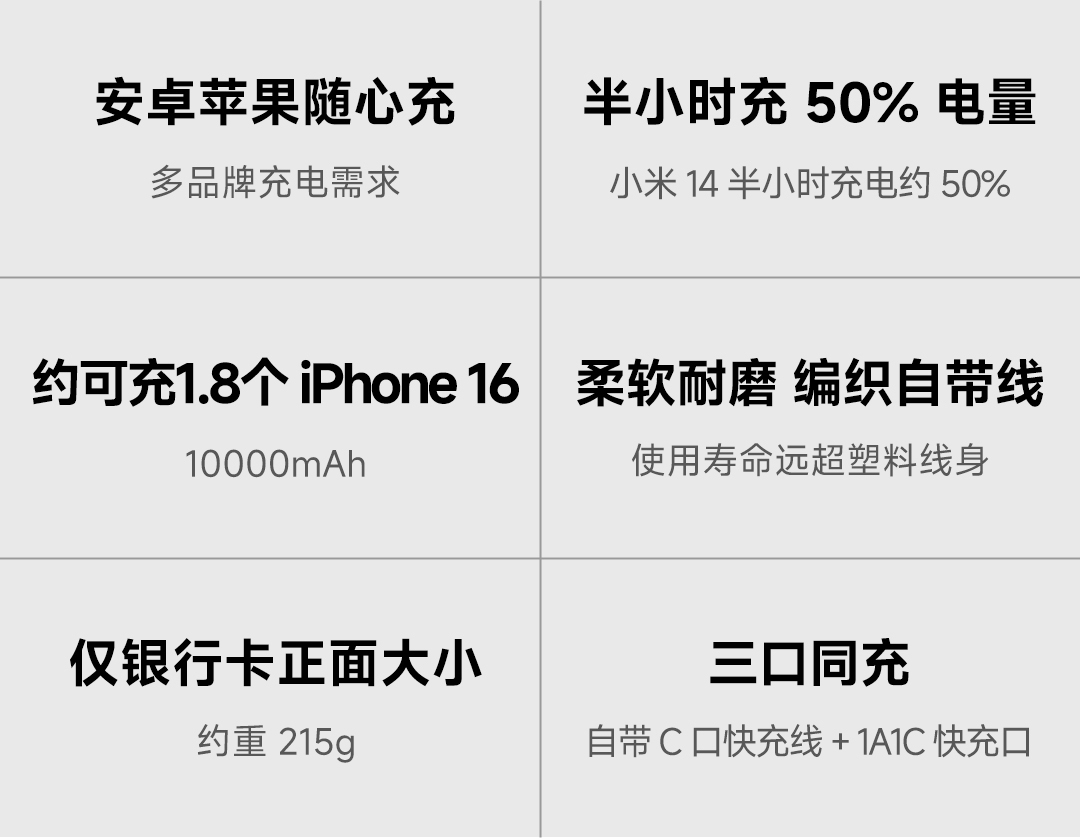 米物 自带线超薄移动电源 10000mAh 22.5W钛金 适用于苹果17系列