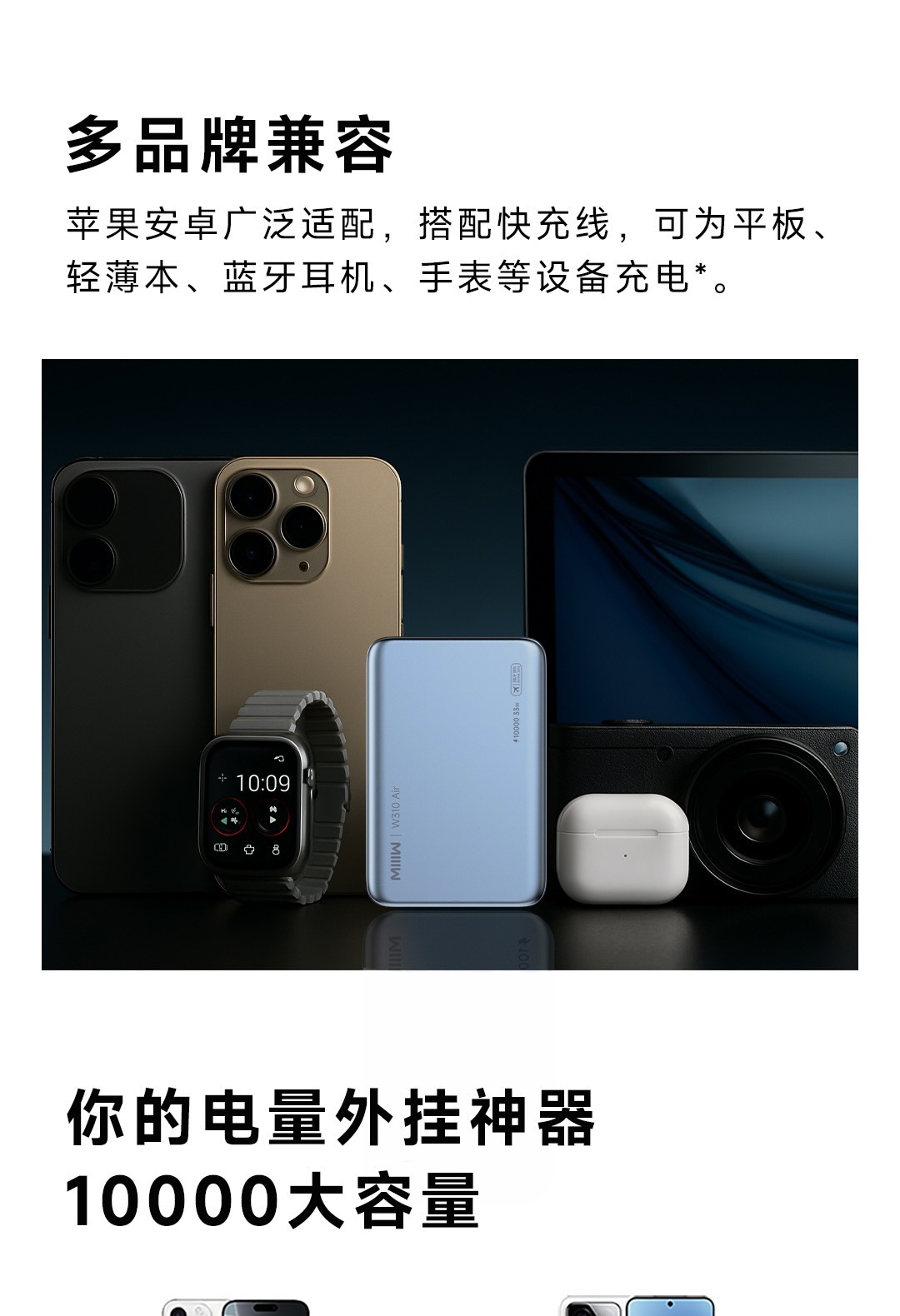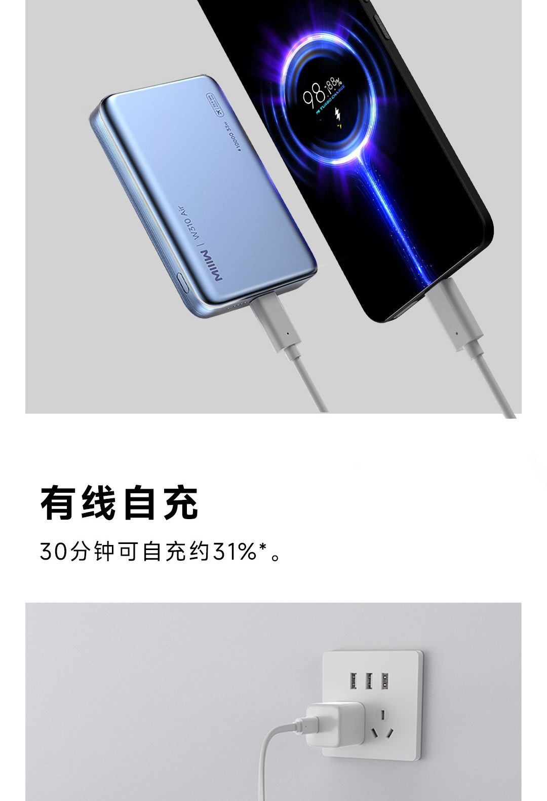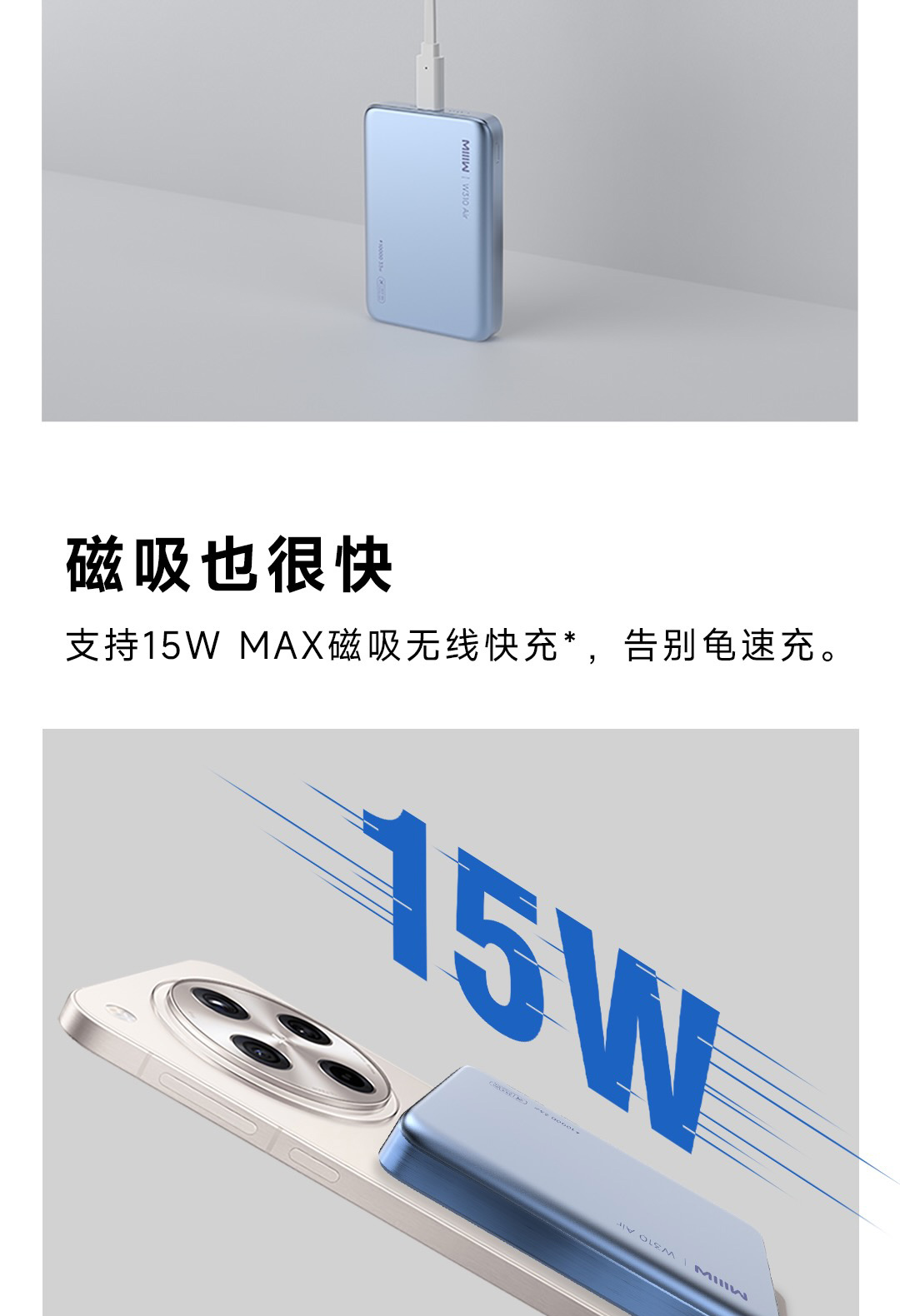 米物 磁吸充电宝10000毫安 33W 快充移动电源 天际蓝 适用苹果17系列