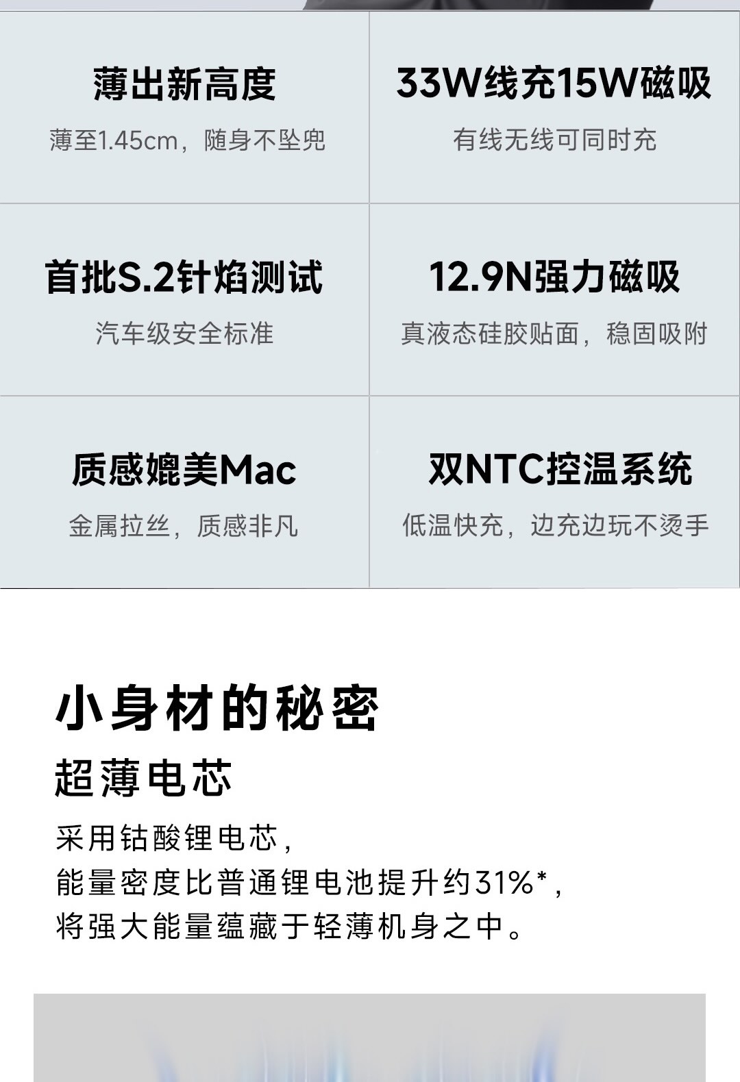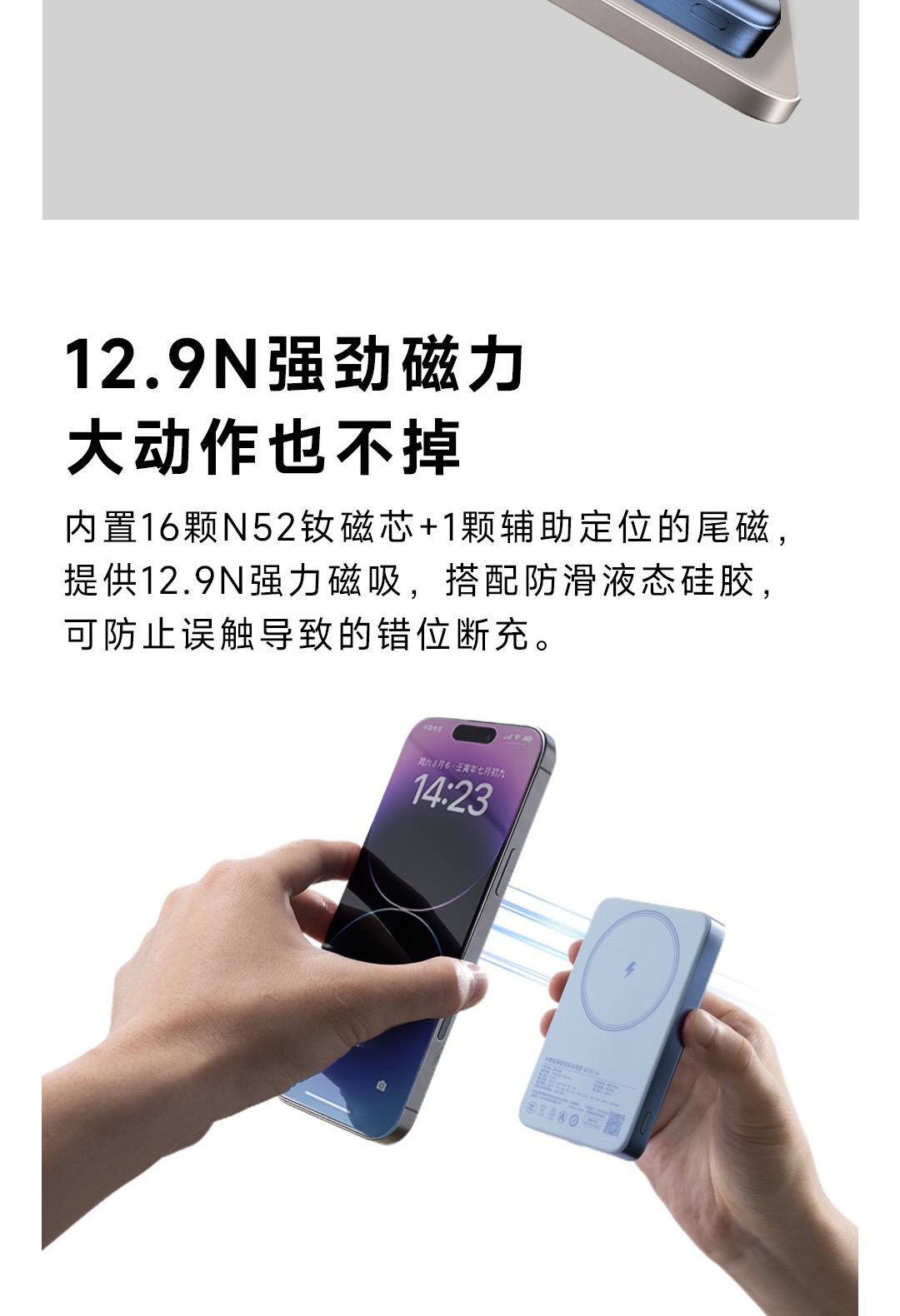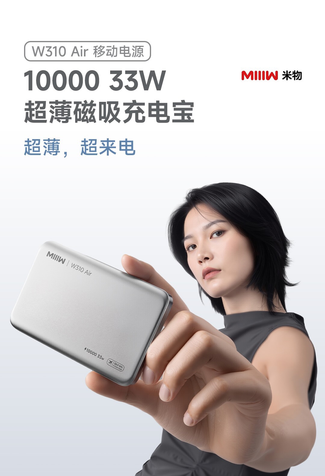 米物 磁吸充电宝10000毫安 33W 快充移动电源 天际蓝 适用苹果17系列