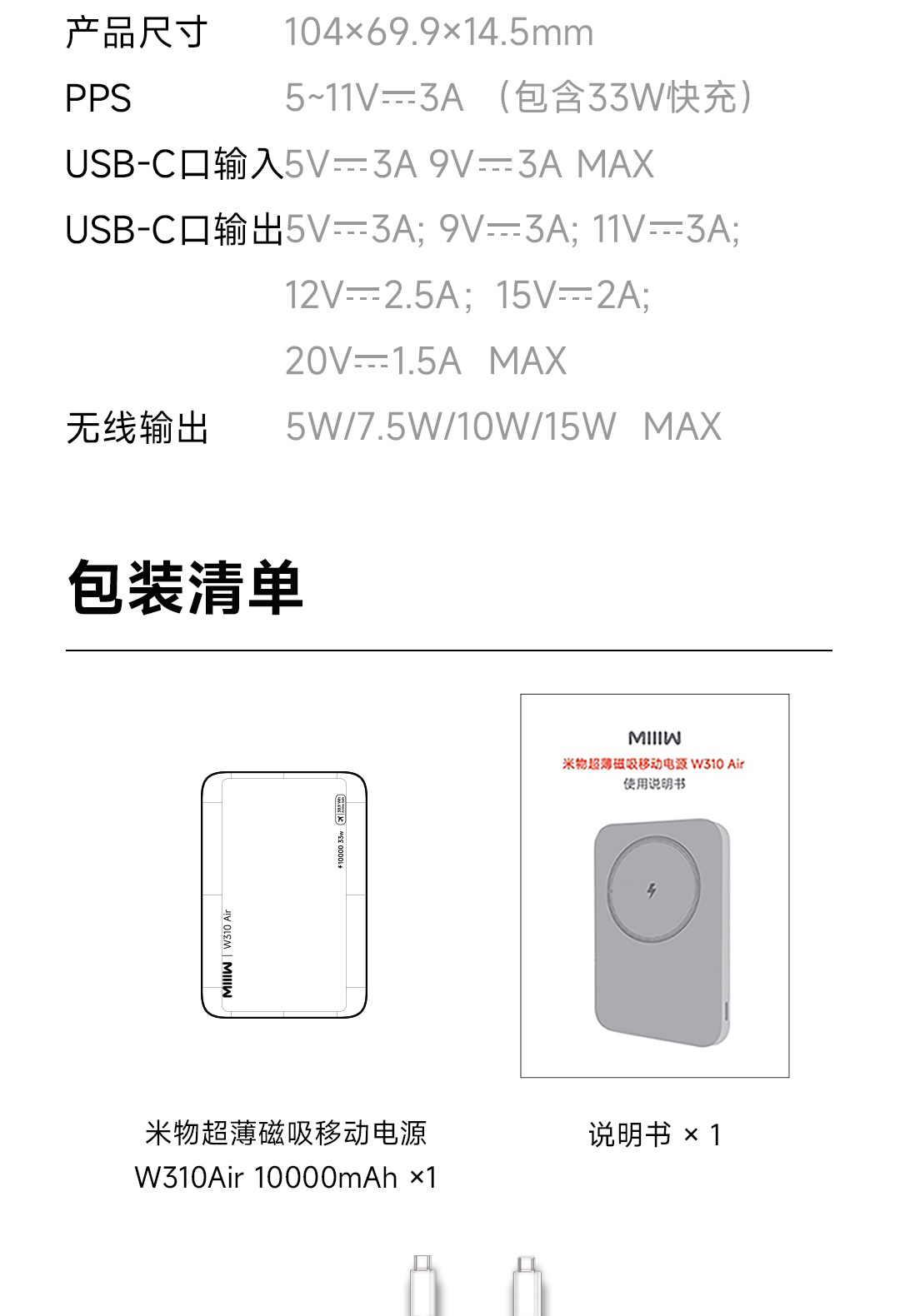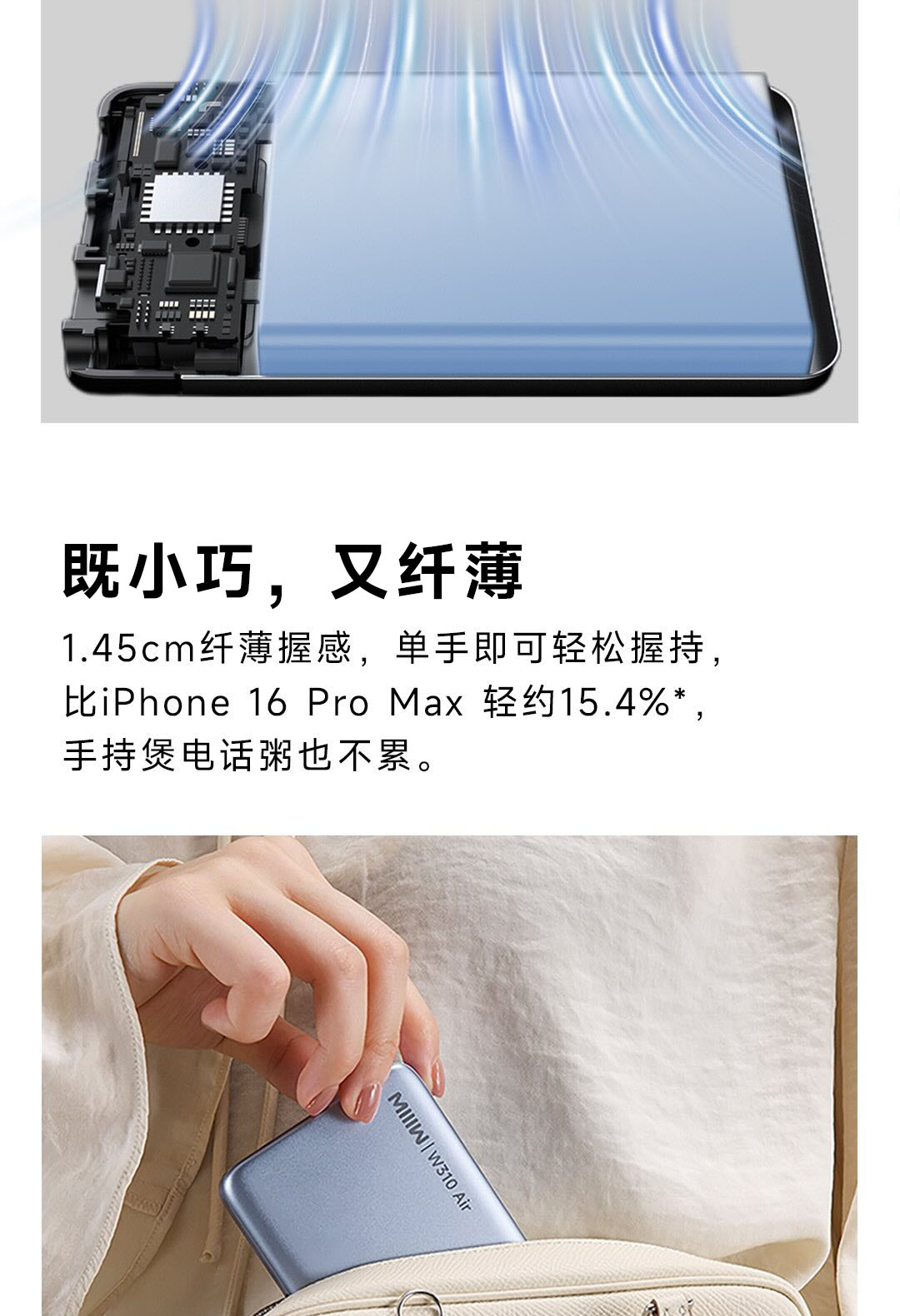 米物 自带线超薄移动电源 10000mAh 22.5W钛金 适用于苹果17系列