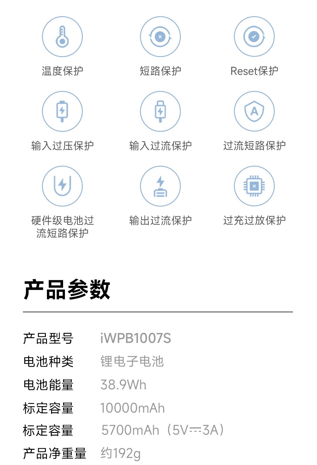 小米自带线充电宝10000mAh口袋版 灰蓝色