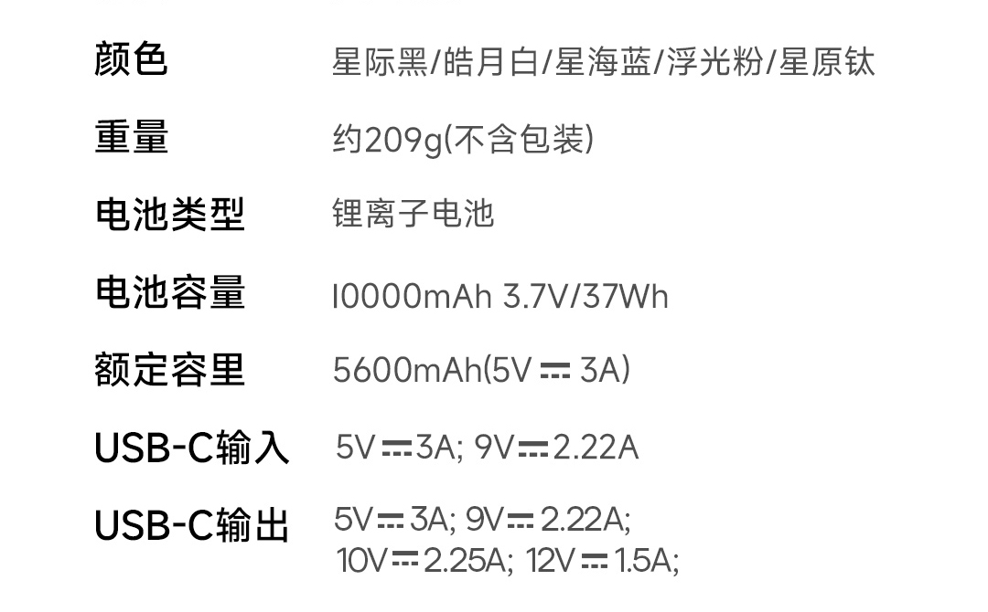小米自带线充电宝10000mAh口袋版 灰蓝色