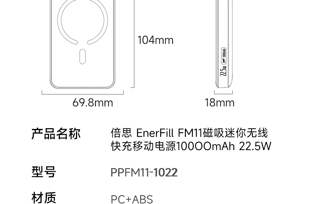 倍思 磁吸迷你无线快充充电宝大容量移动电源魔幻黑【22.5W快充】⚡Magsafe磁吸★适用苹果8-16