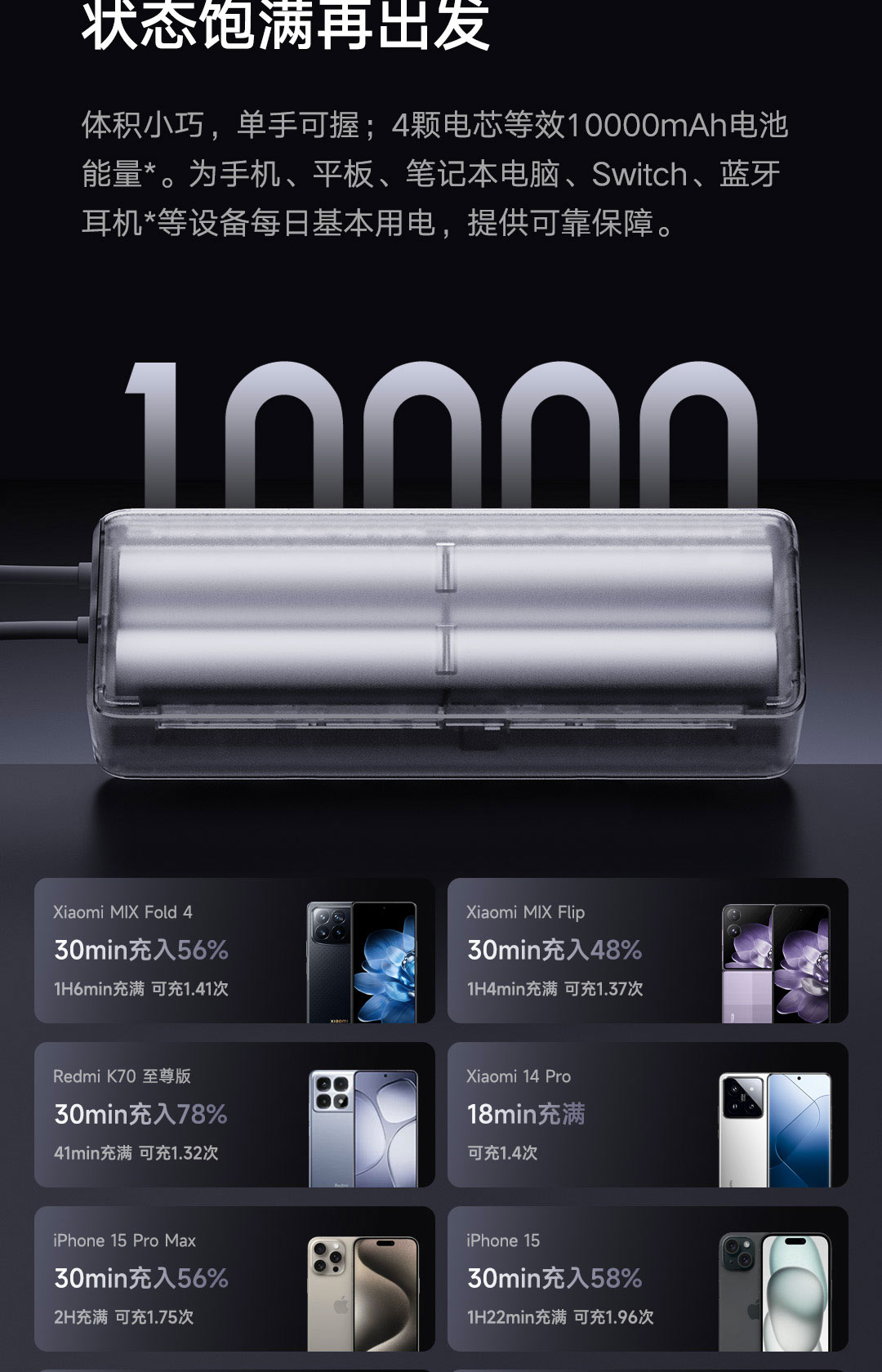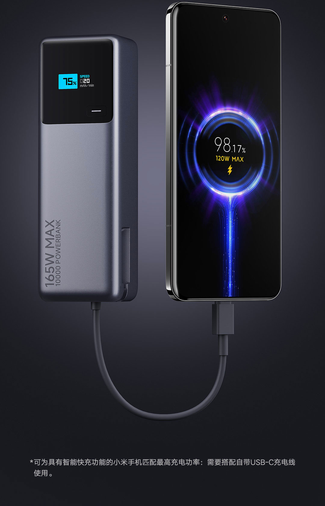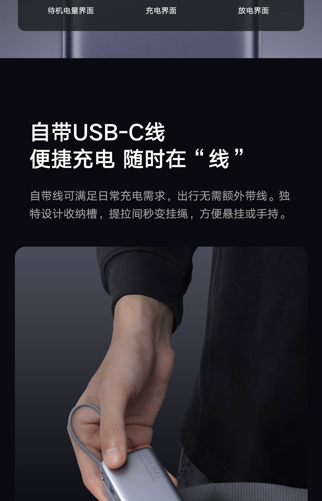 米物 自带线超薄移动电源 10000mAh 22.5W钛金 适用于苹果17系列