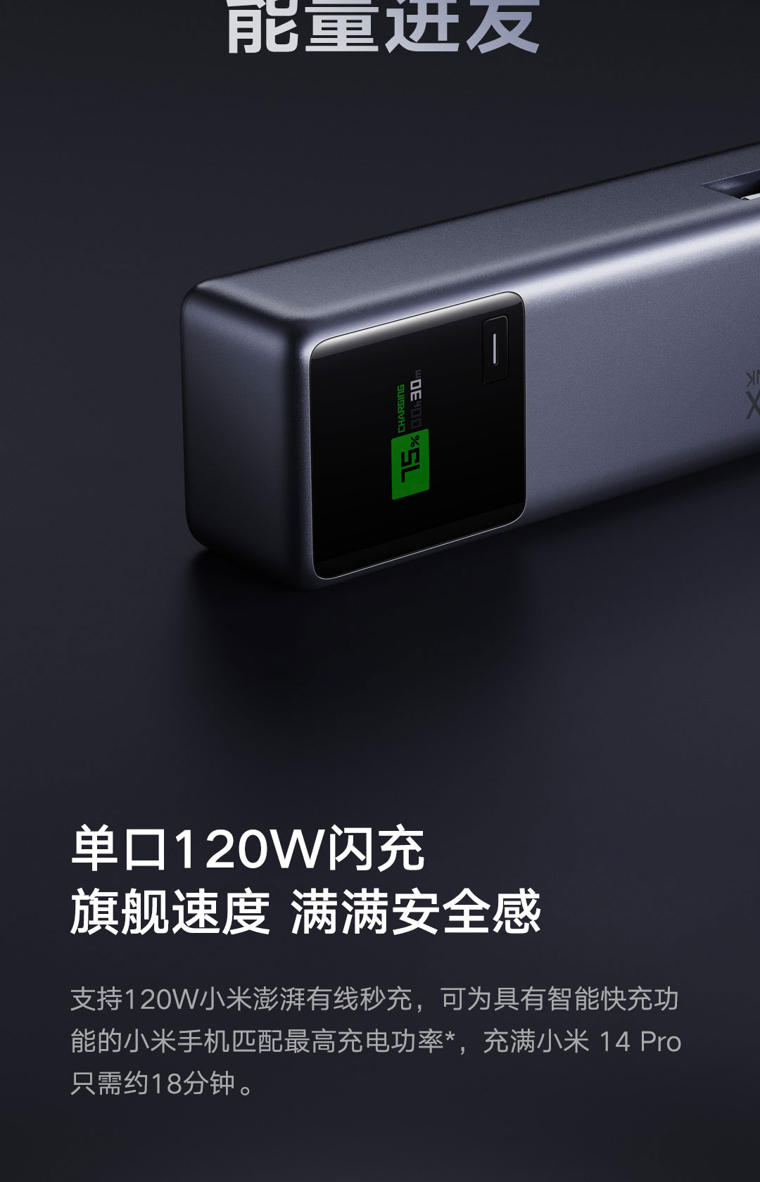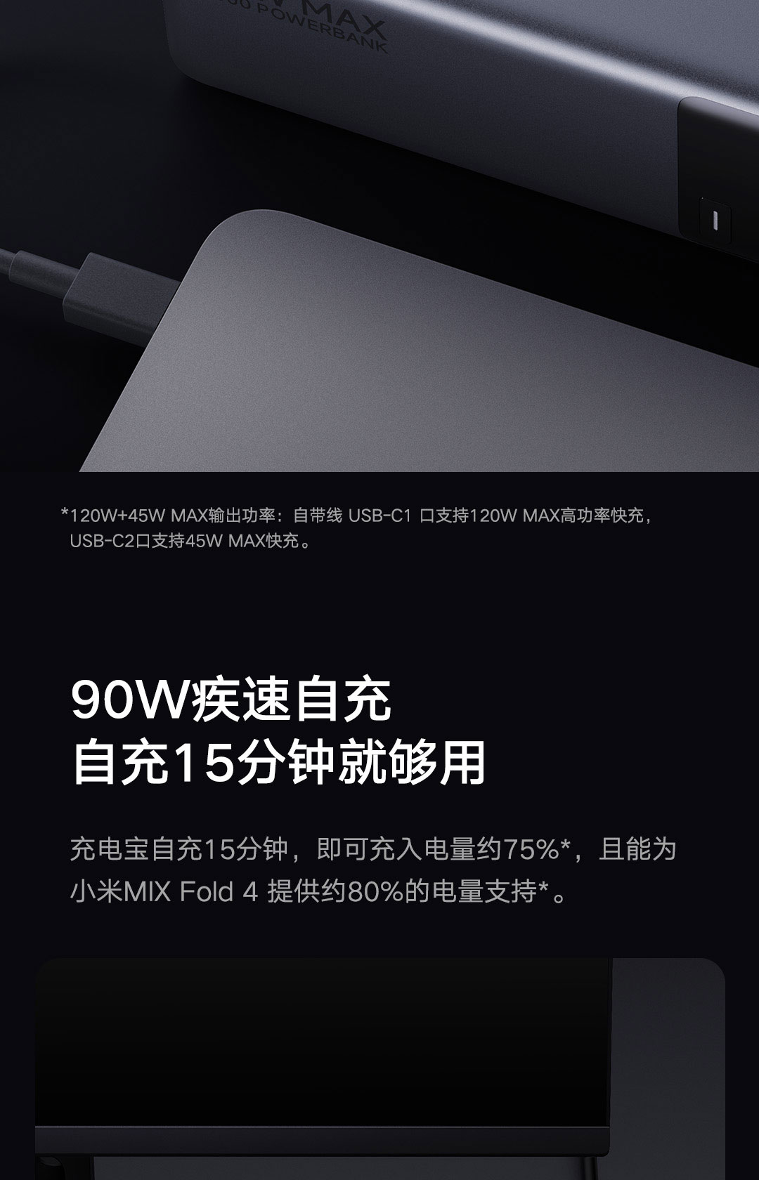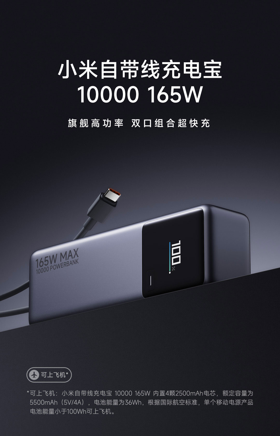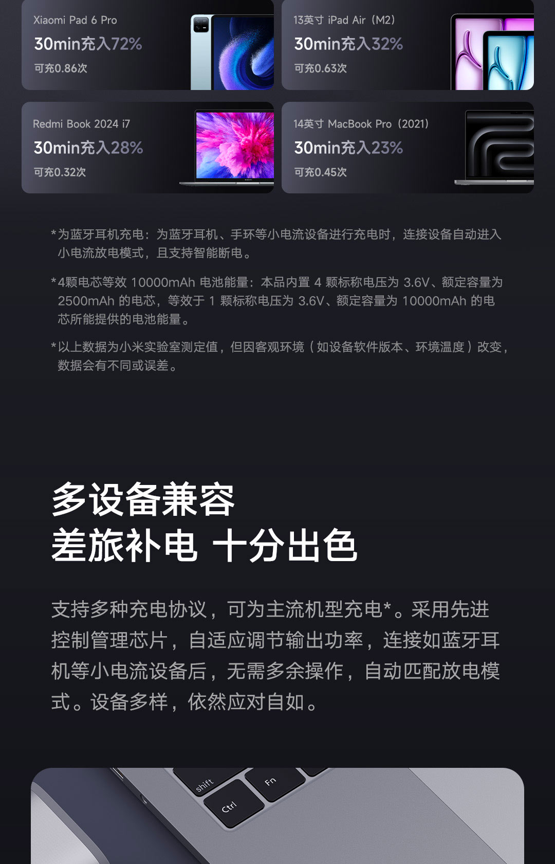 米物 自带线超薄移动电源 10000mAh 22.5W钛金 适用于苹果17系列