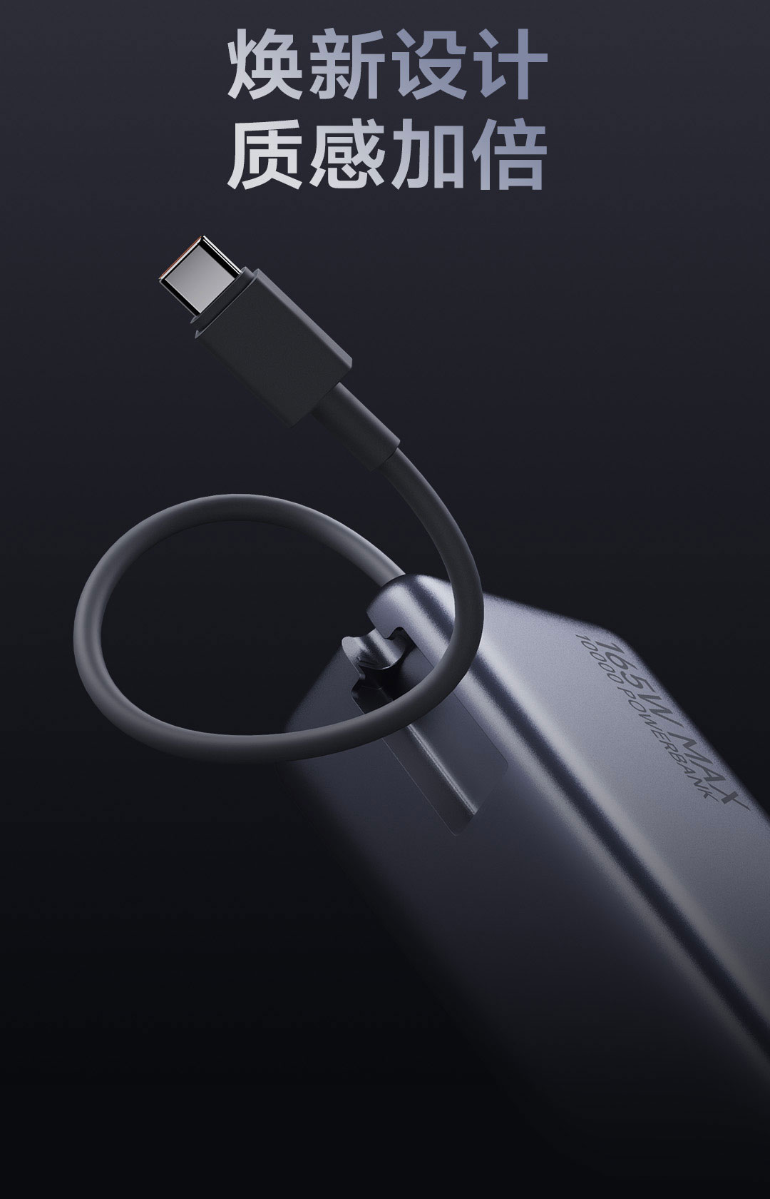 小米自带线充电宝10000mAh口袋版 灰蓝色