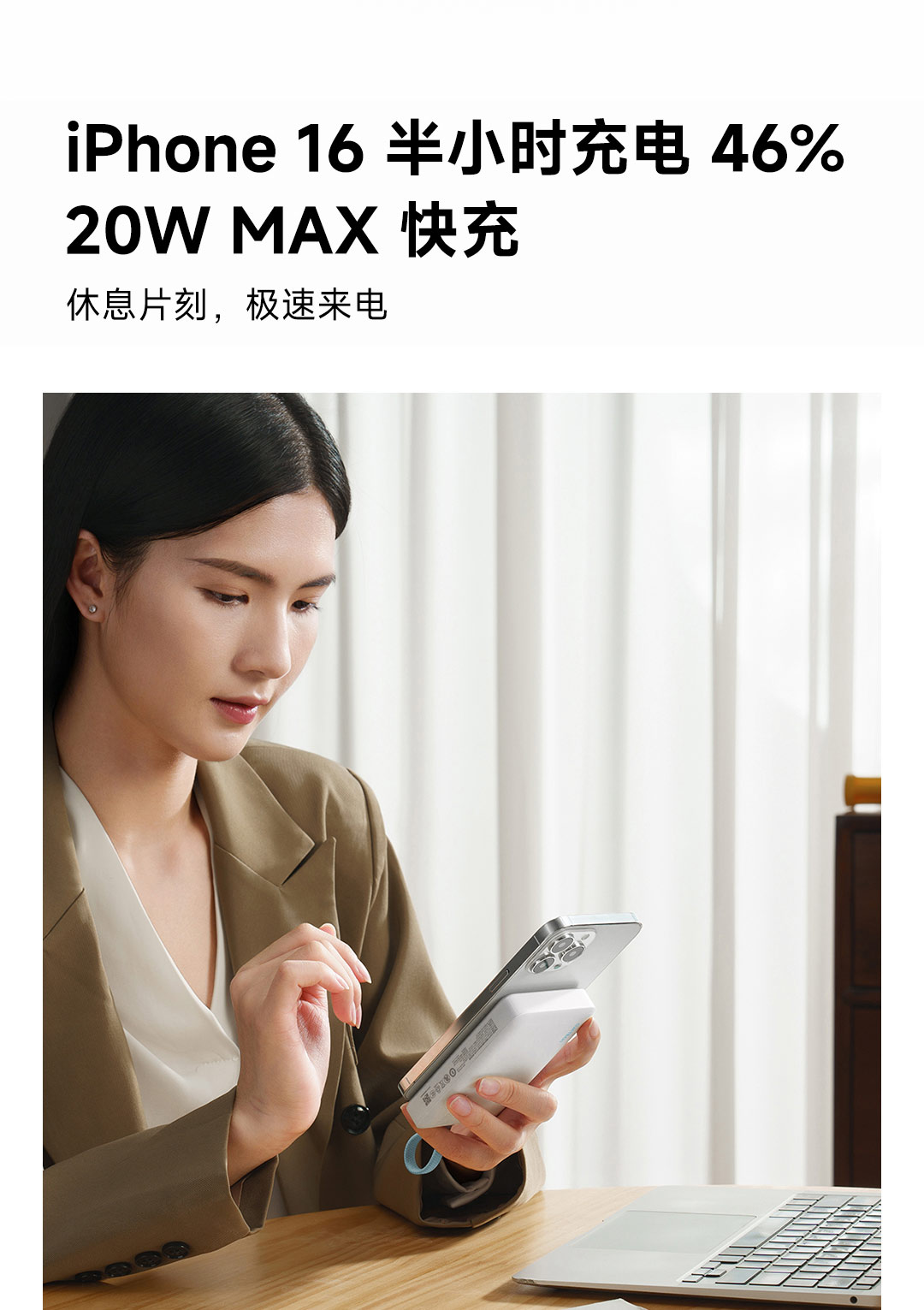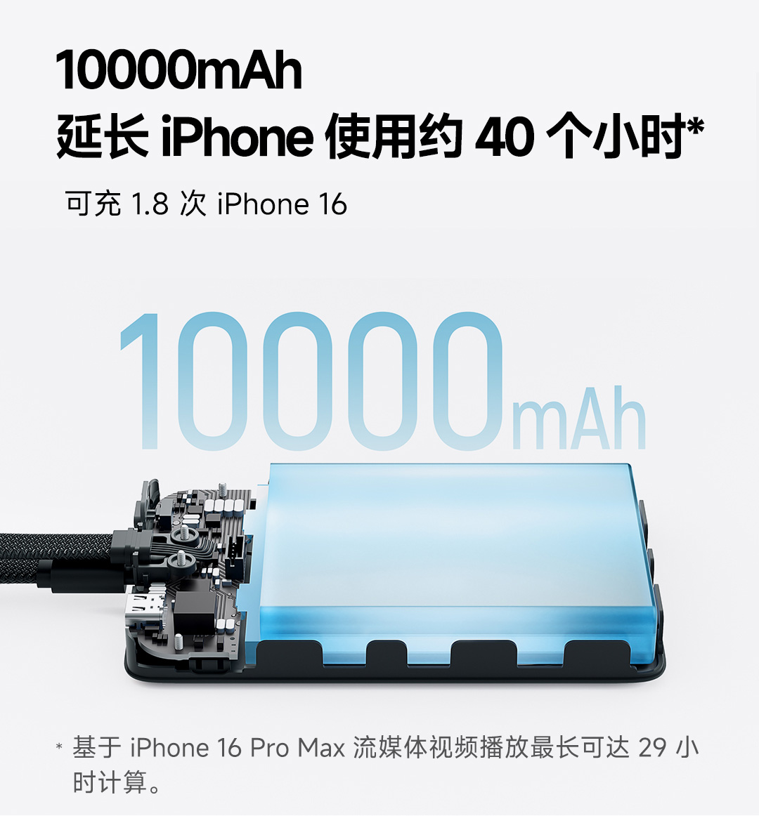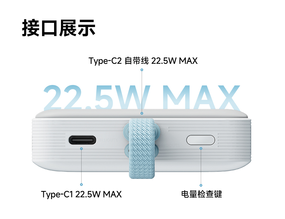 米物 自带线超薄移动电源 10000mAh 22.5W钛金 适用于苹果17系列