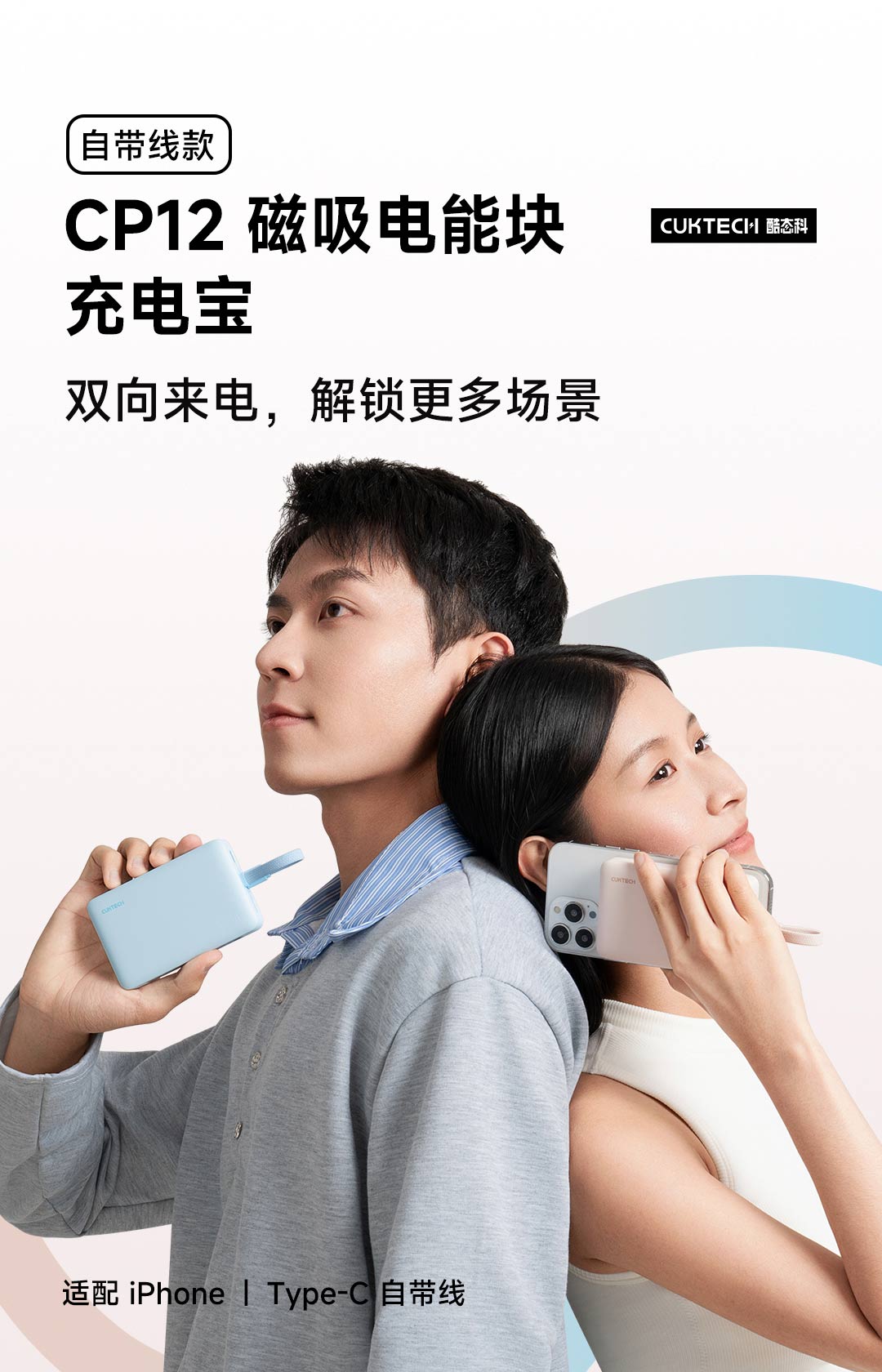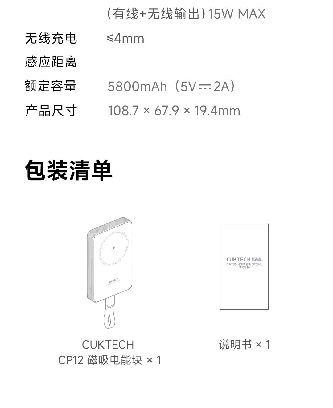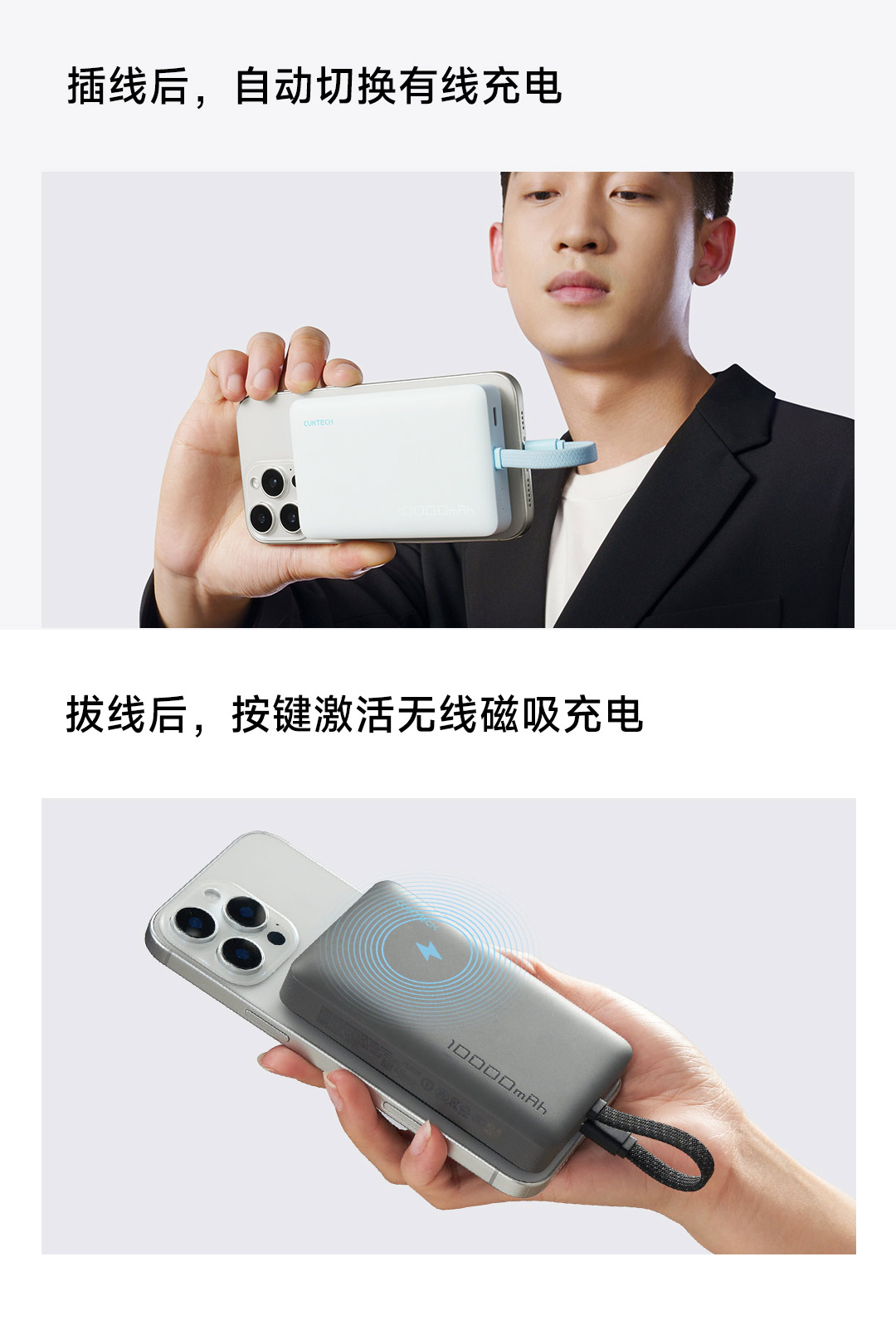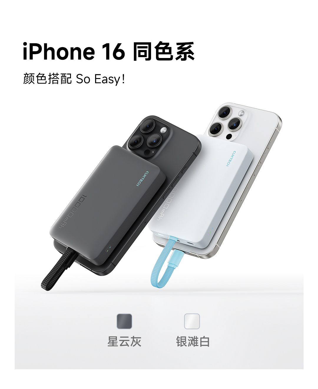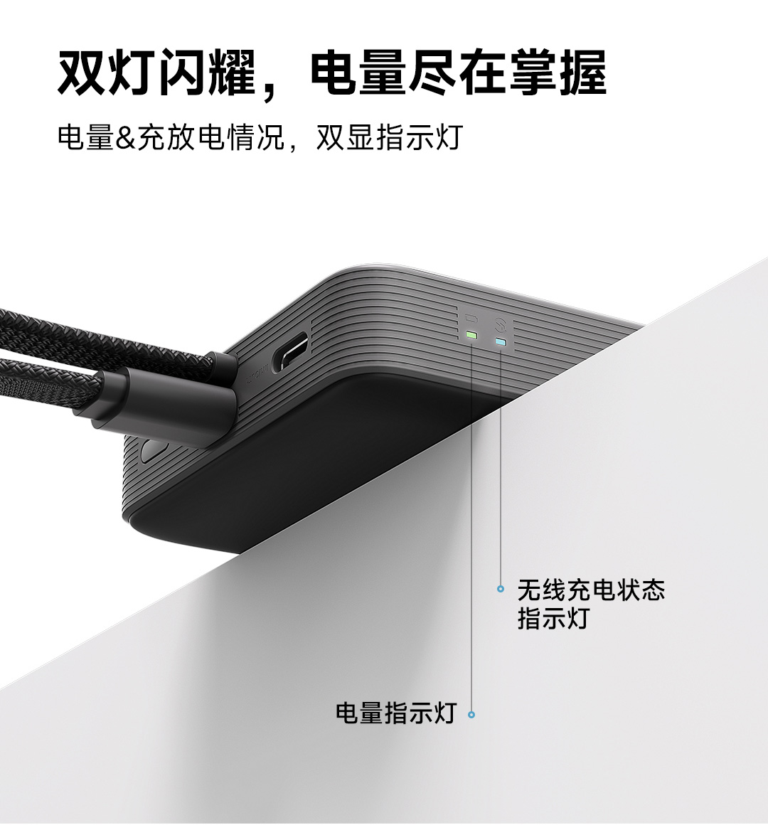 CUKTECH酷态科自带线电能块 LPB100 亚钛灰