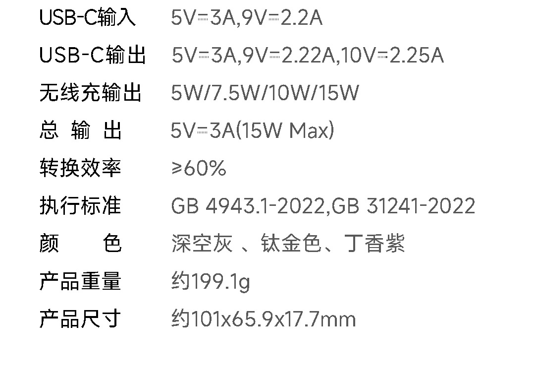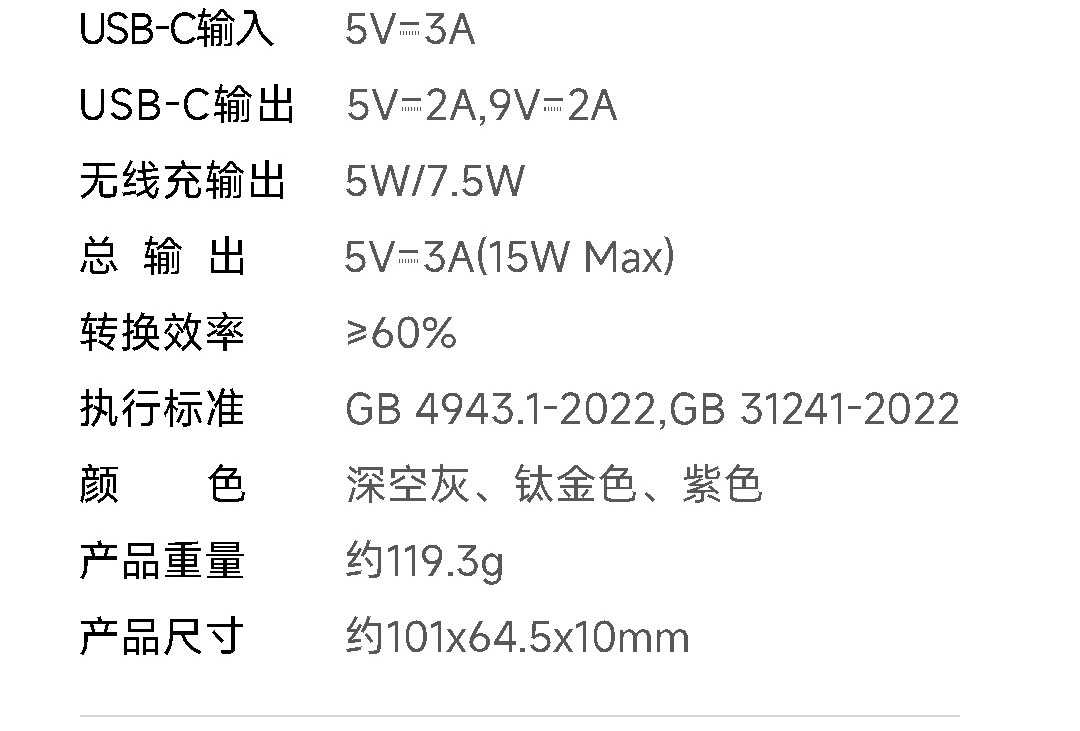 CUKTECH酷态科自带线电能块 LPB100 亚钛灰