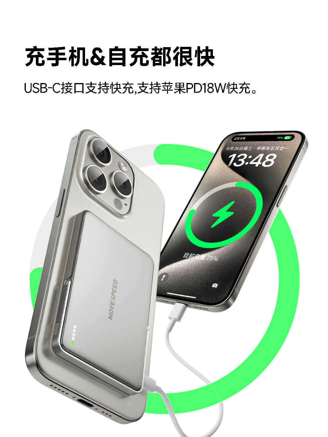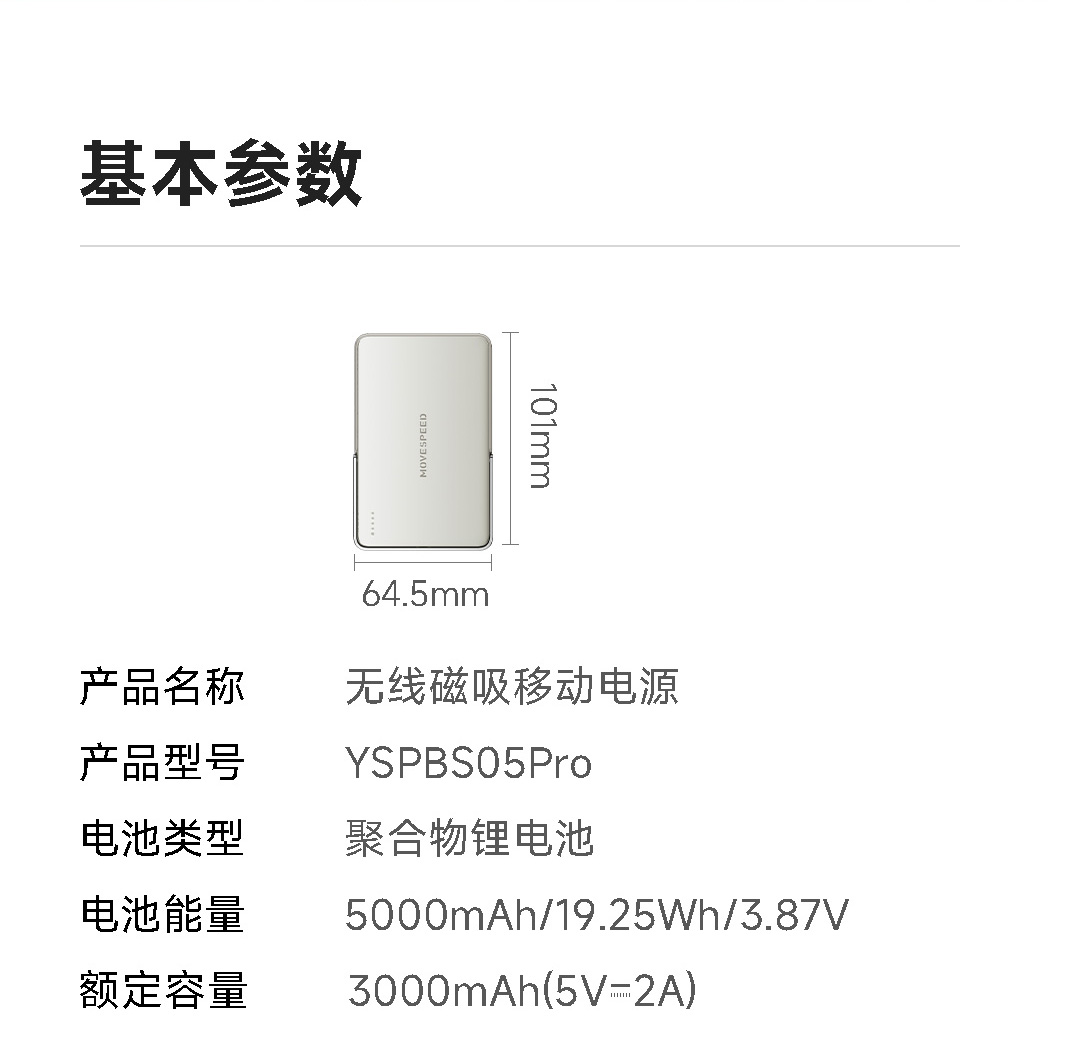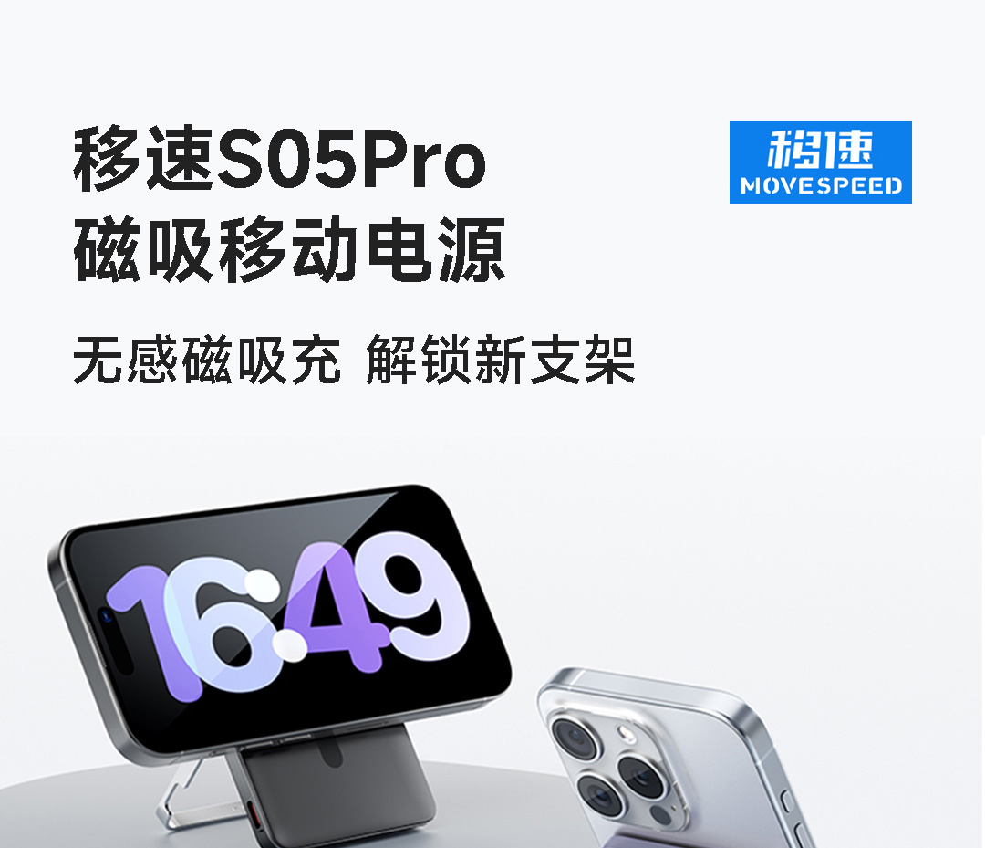 移速磁吸款支架无线充电宝 5000mAh 深空灰