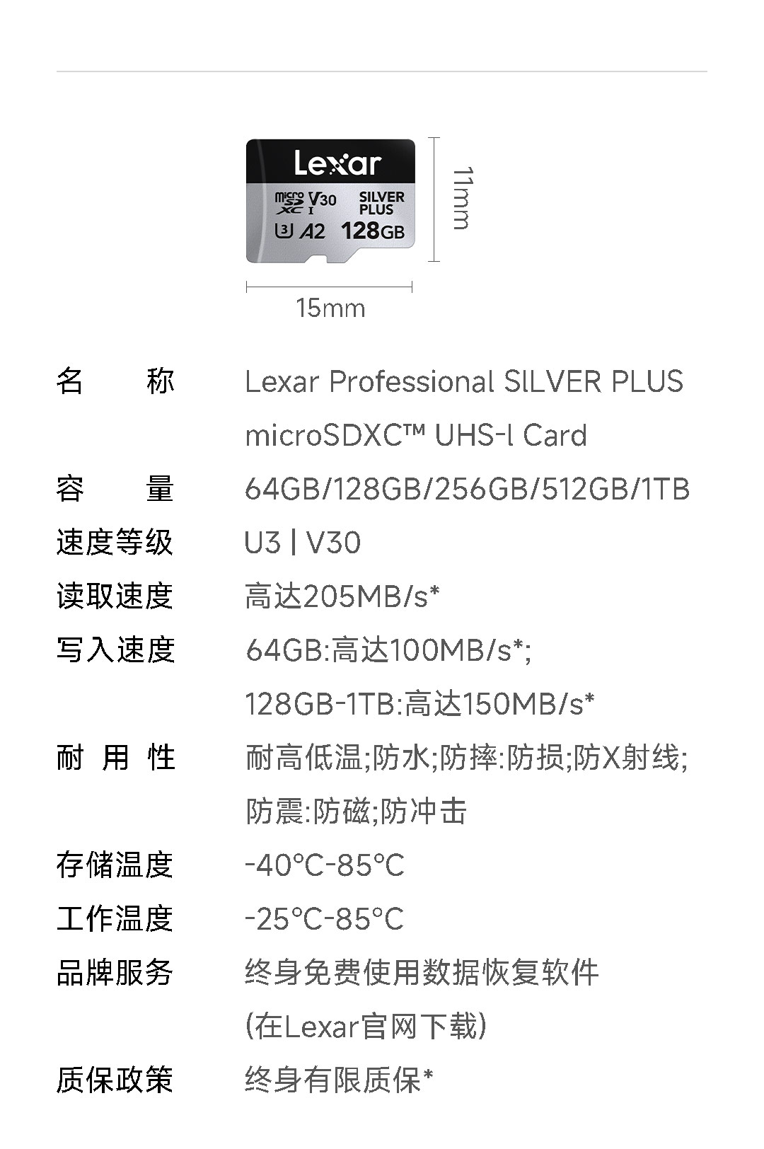 雷克沙TF(MicroSD) 存储卡SILVER PLUS A2性能高速卡 64G