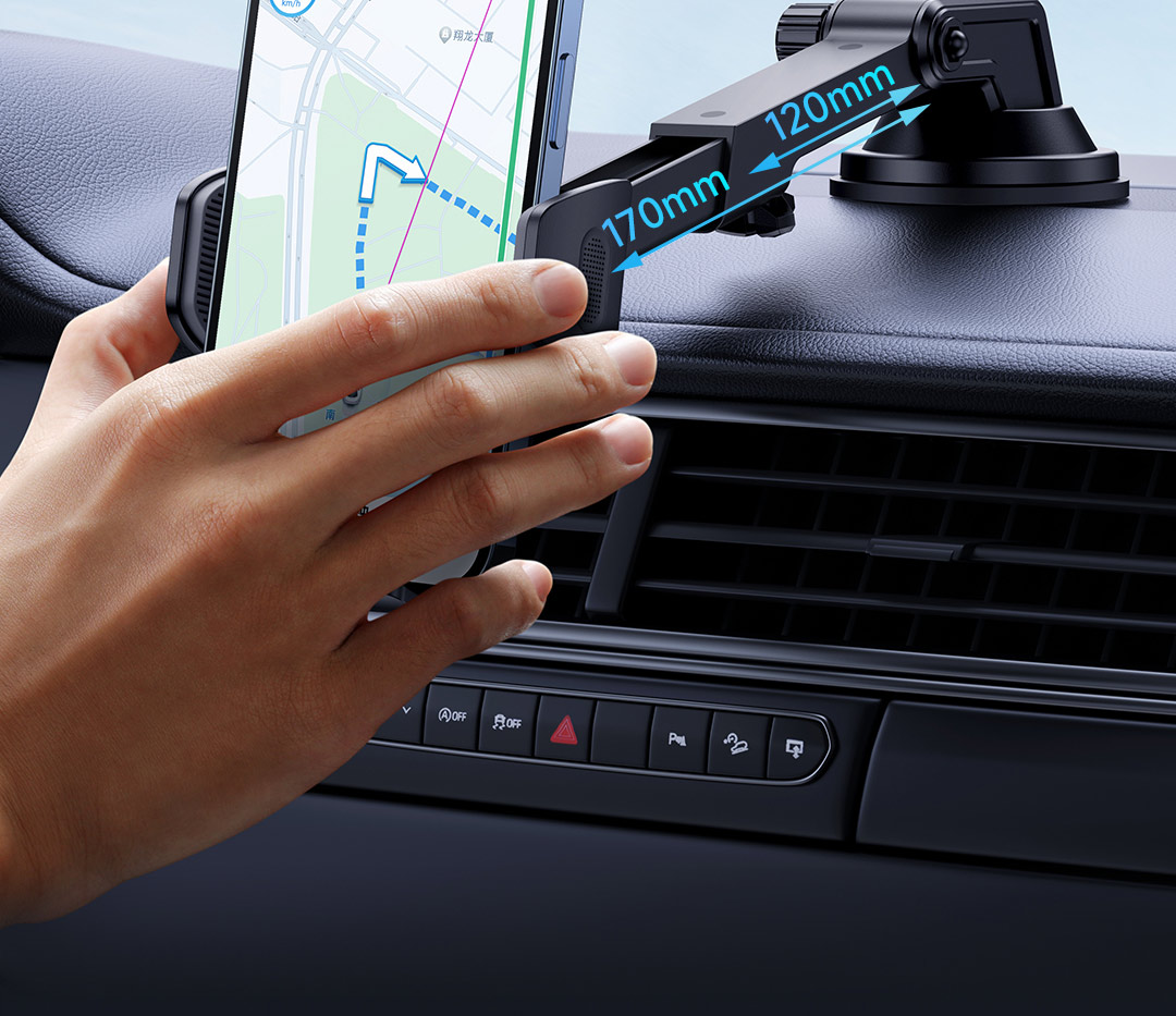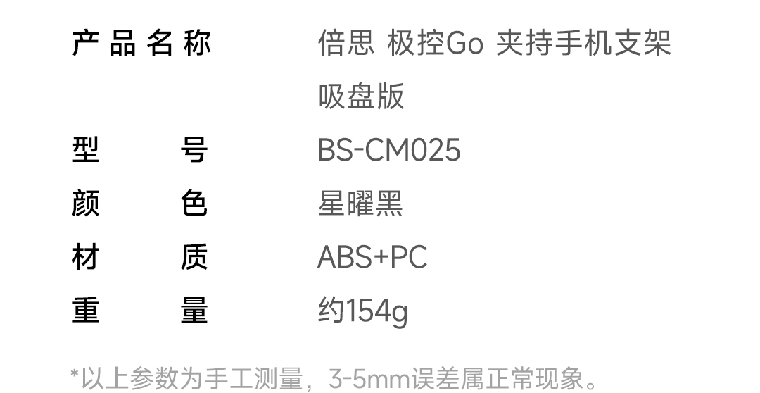 倍思 极控Go吸盘夹持手机车载支架 【顶配吸盘款】稳固防抖★可横竖屏★行驶0异响 黑色