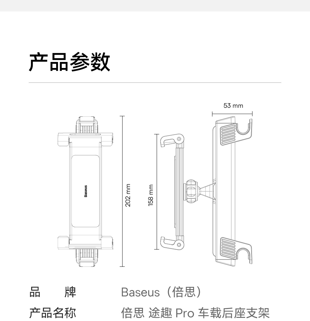倍思 途趣pro后座车载支架