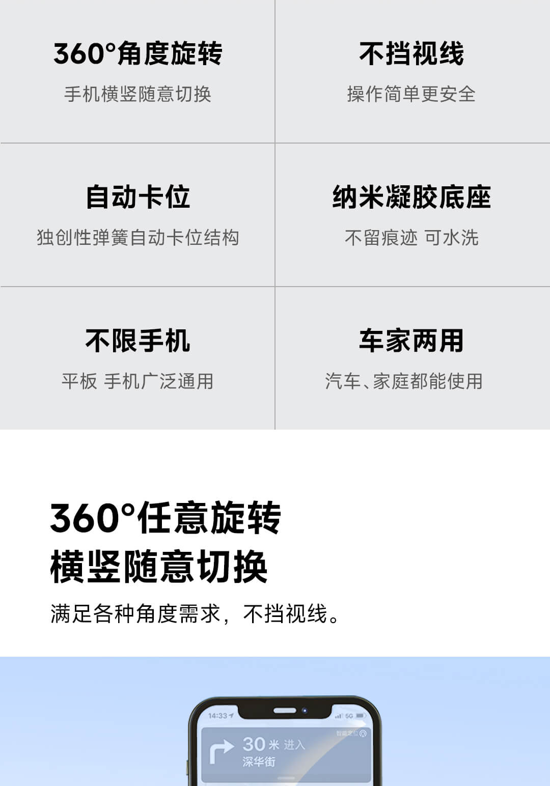 绿联车载手机支架 汽车圆形出风口手机架车用导航适用奔驰宝马 出风口用 银灰色
